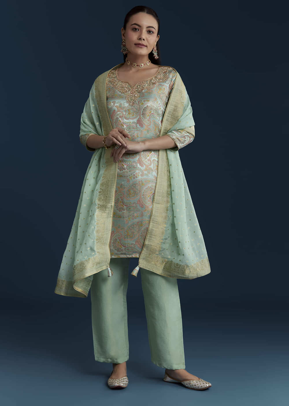 Sea Green Tissue Silk Jacquard Weave Kurta Set