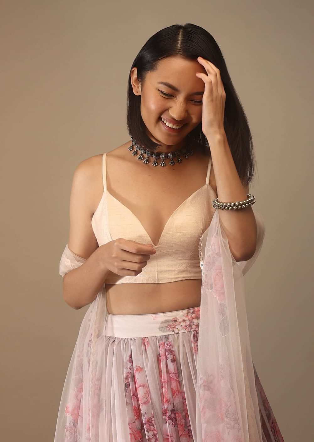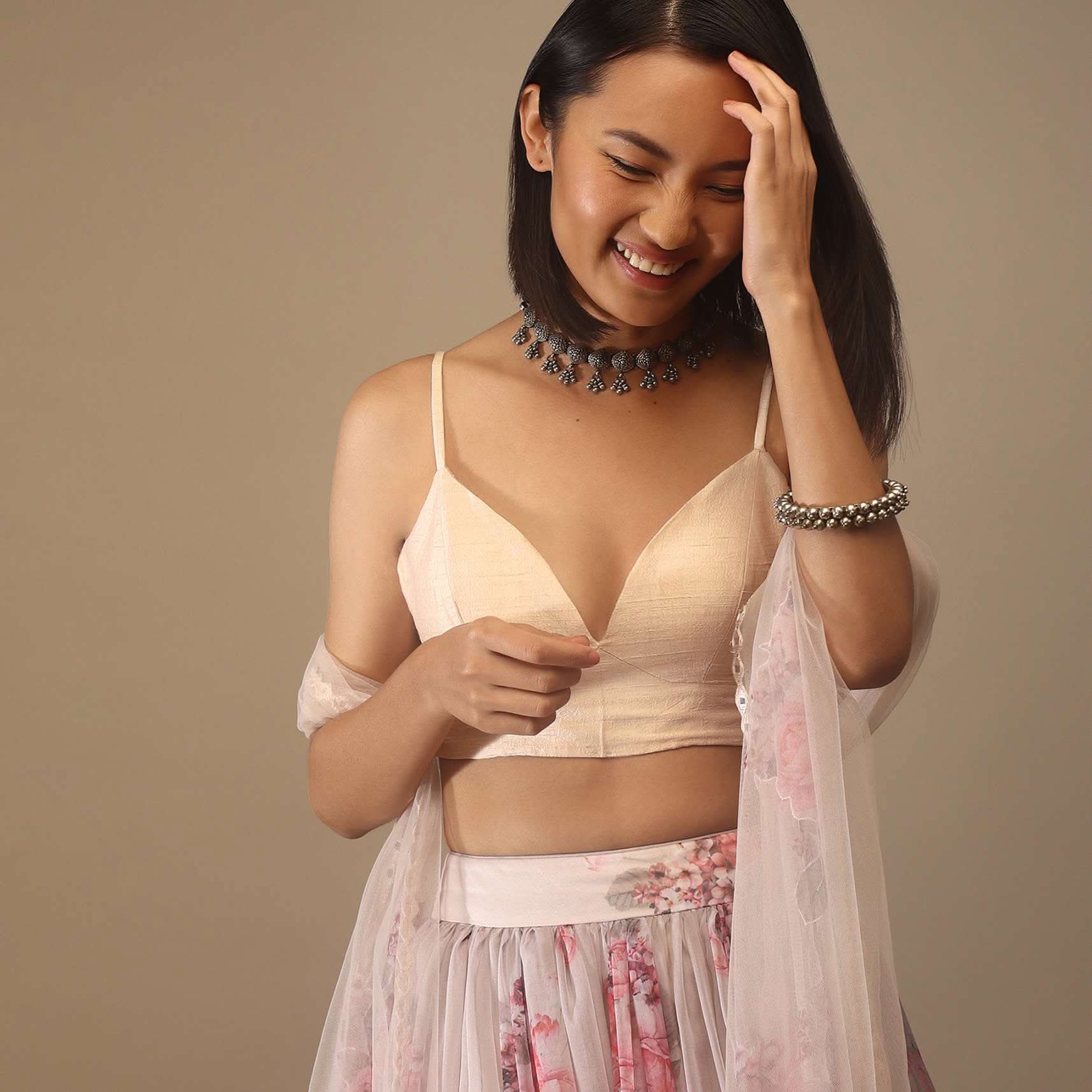 - Couple it with a floral net skirt, dupatta, and a layered neckpiece to complete a sassy bridal look.