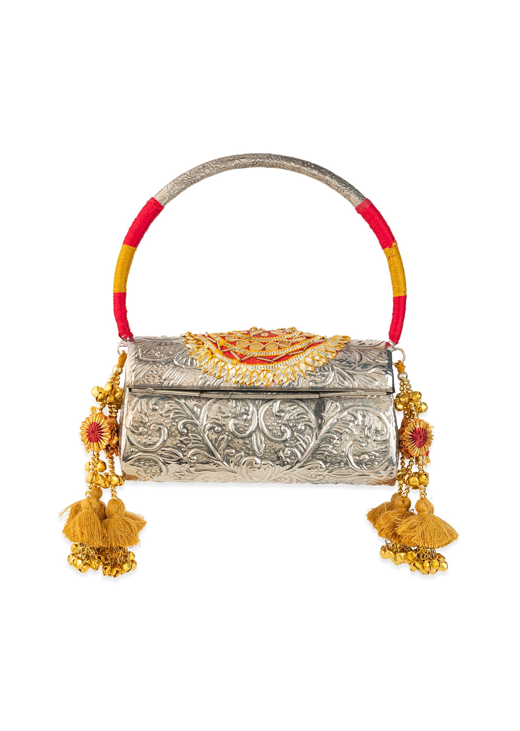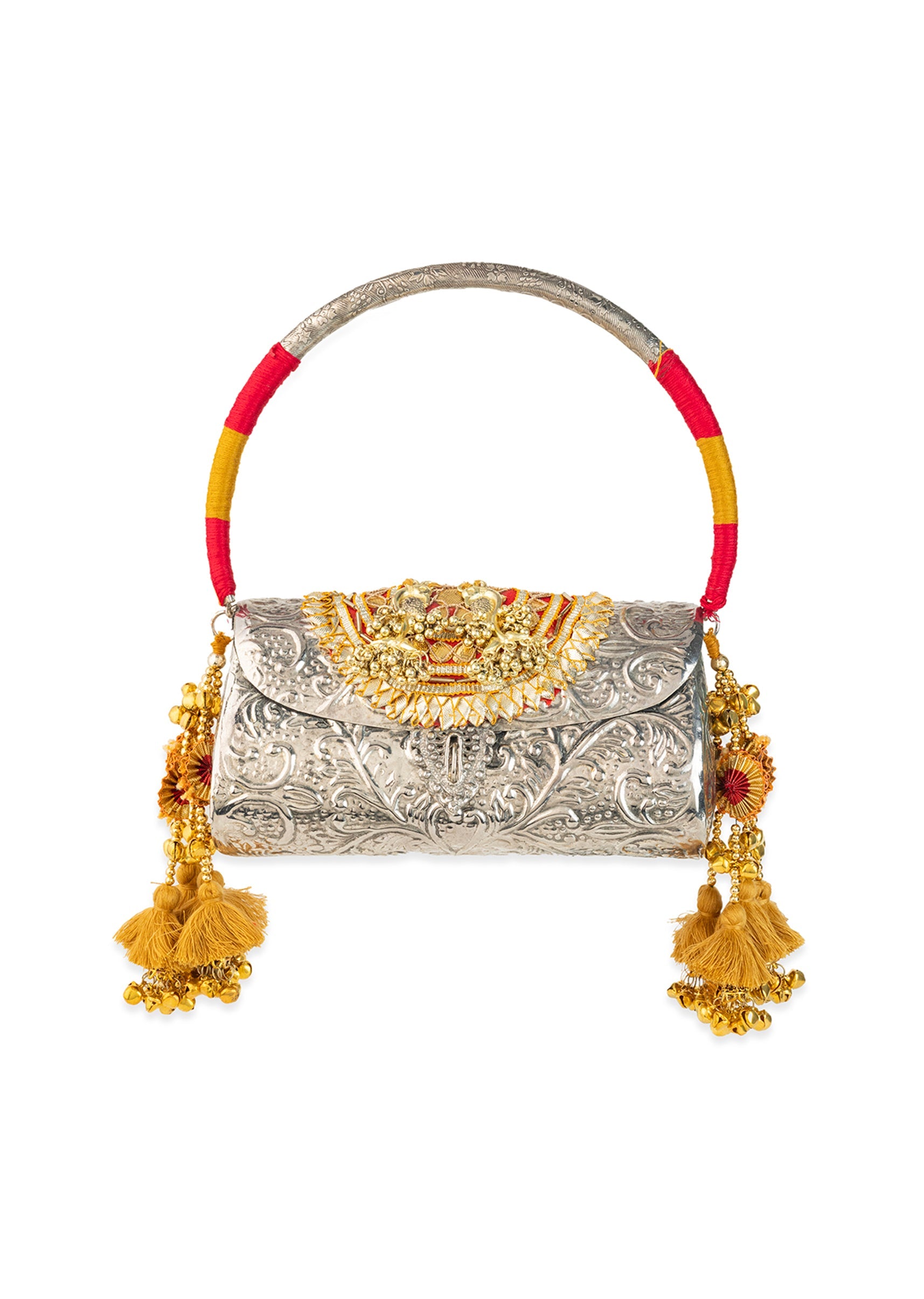 Silver and Gold Embossed Metal Bag with Tassels