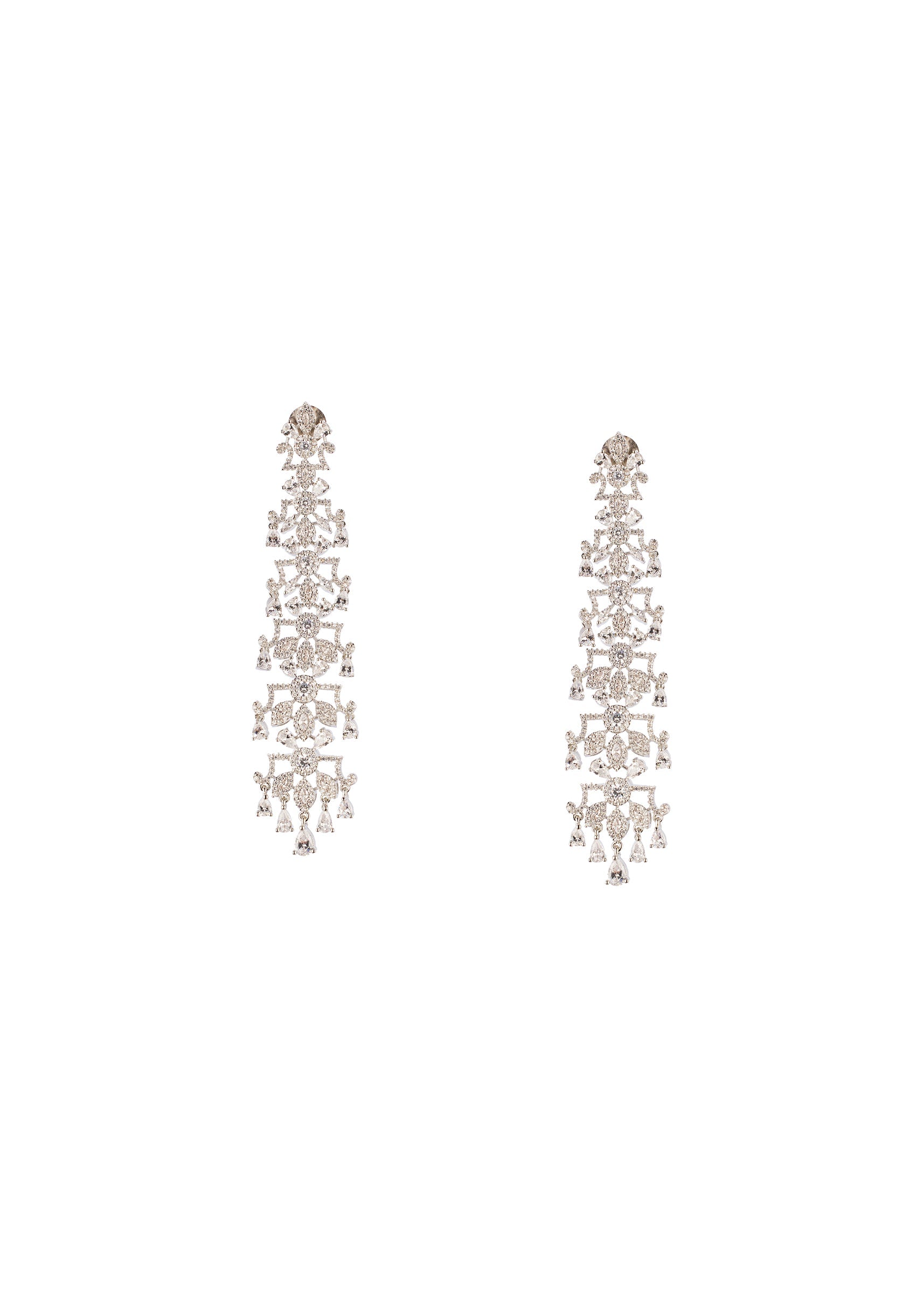 Silver CZ Diamond Rhodium-Plated Long Earrings in Anti-Tarnish Finish