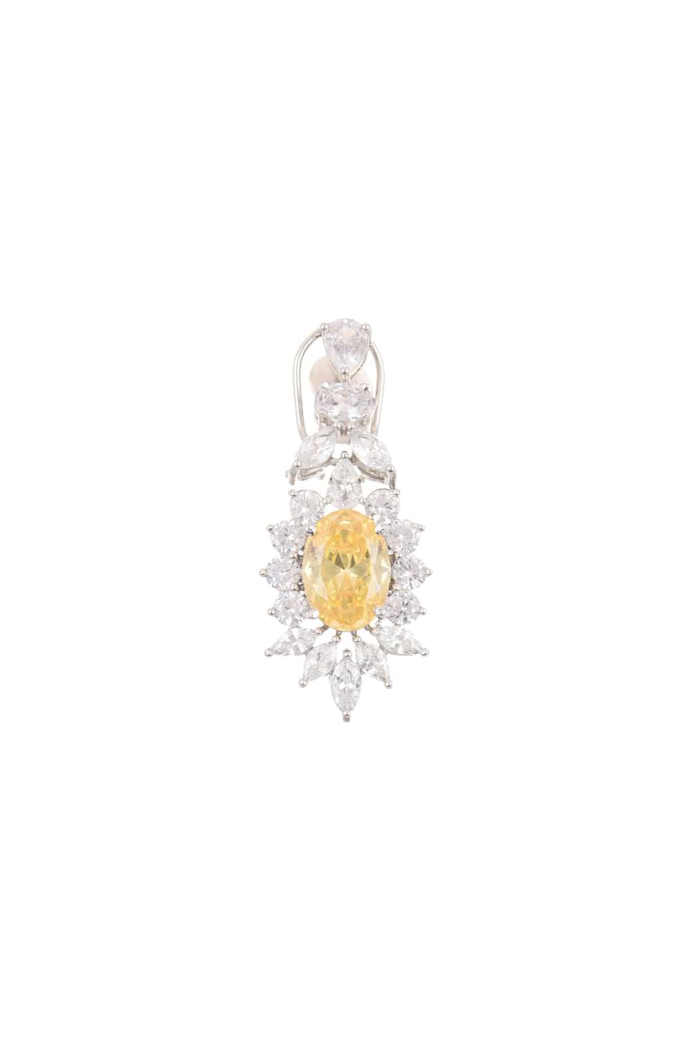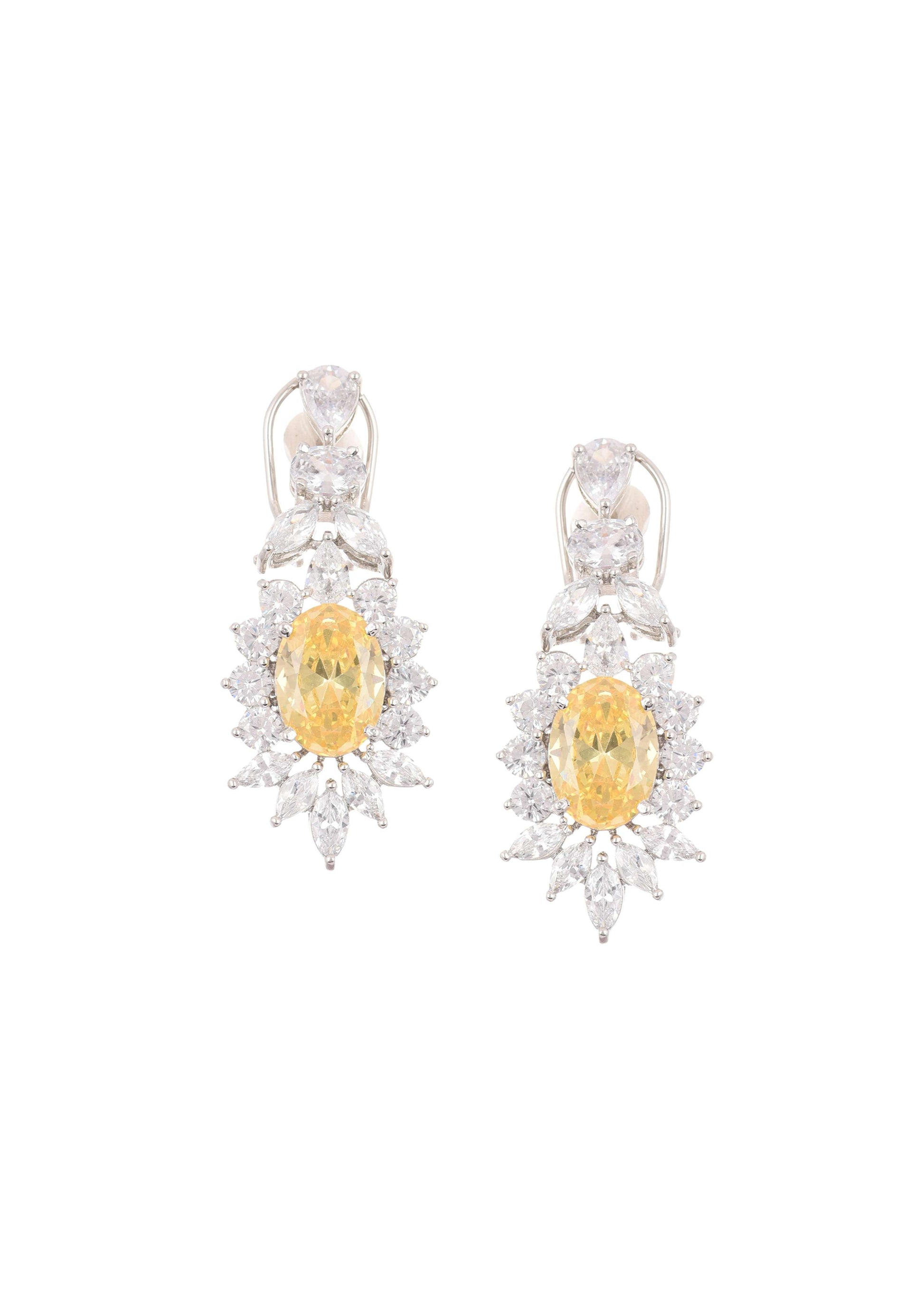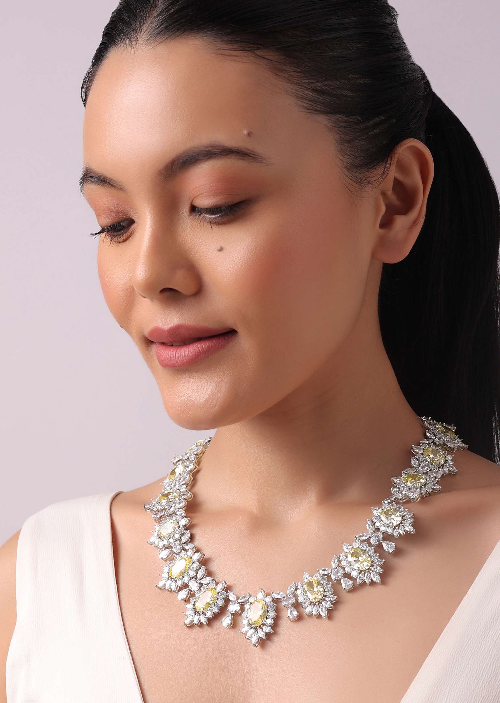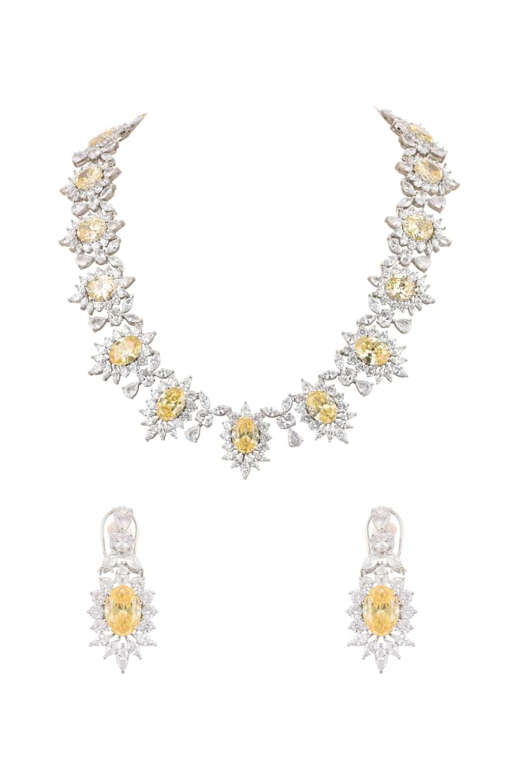 Silver Finish Elizabethian Necklace Set with Champagne Oval Stone and Faux diamonds