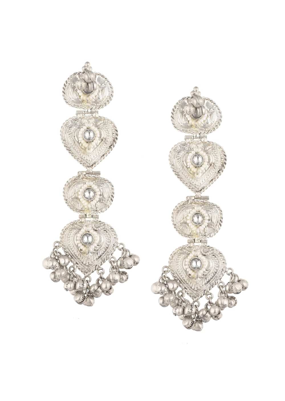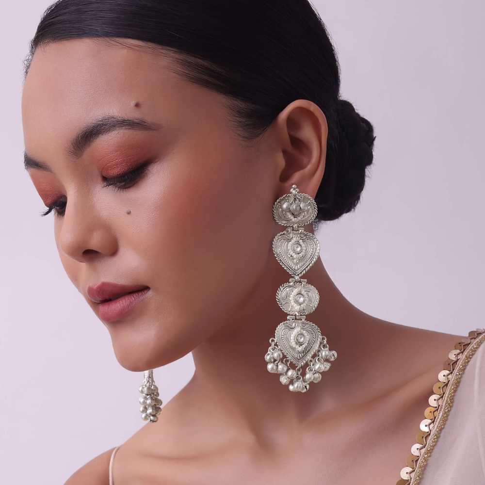 - Indulge in opulence with our exquisite silver finish oxidised danglers in fusion style.