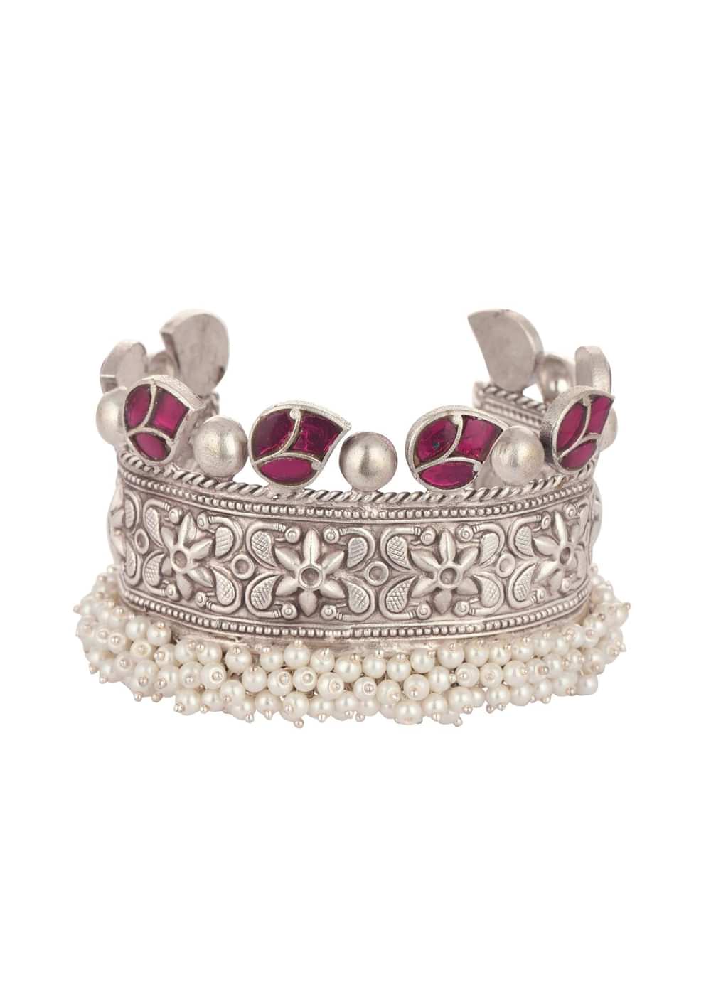 - Elevate your wrist with the exquisite beauty of our oxidised kada in fusion style.