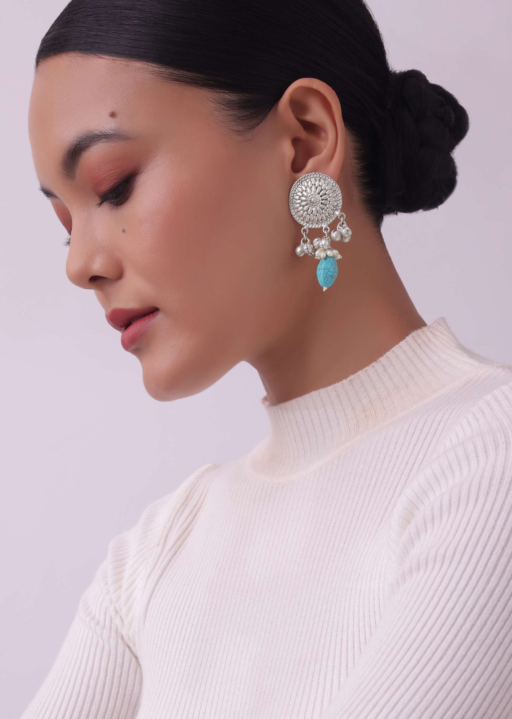 Silver Finish Oxidised Long Necklace Set Infused With Kundan Work And Beads