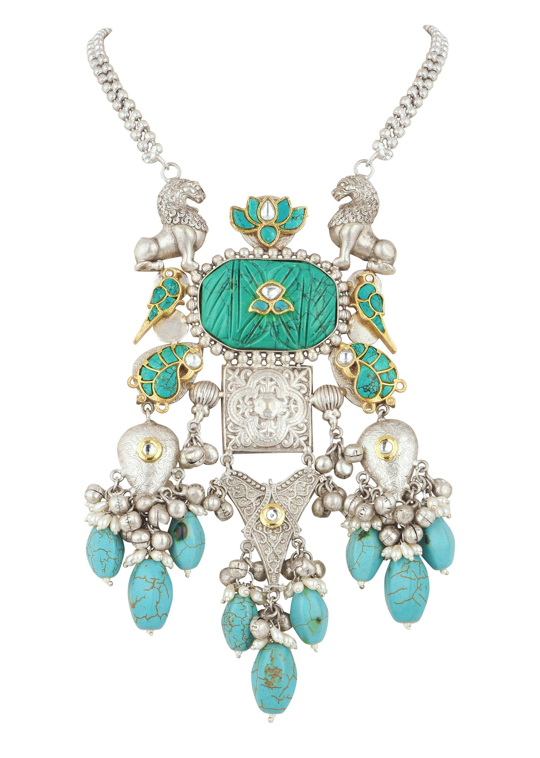 - Experience the enchantment of our silver finish oxidised choker and earring set.