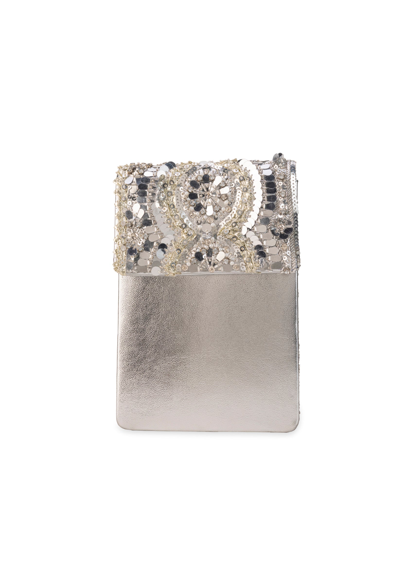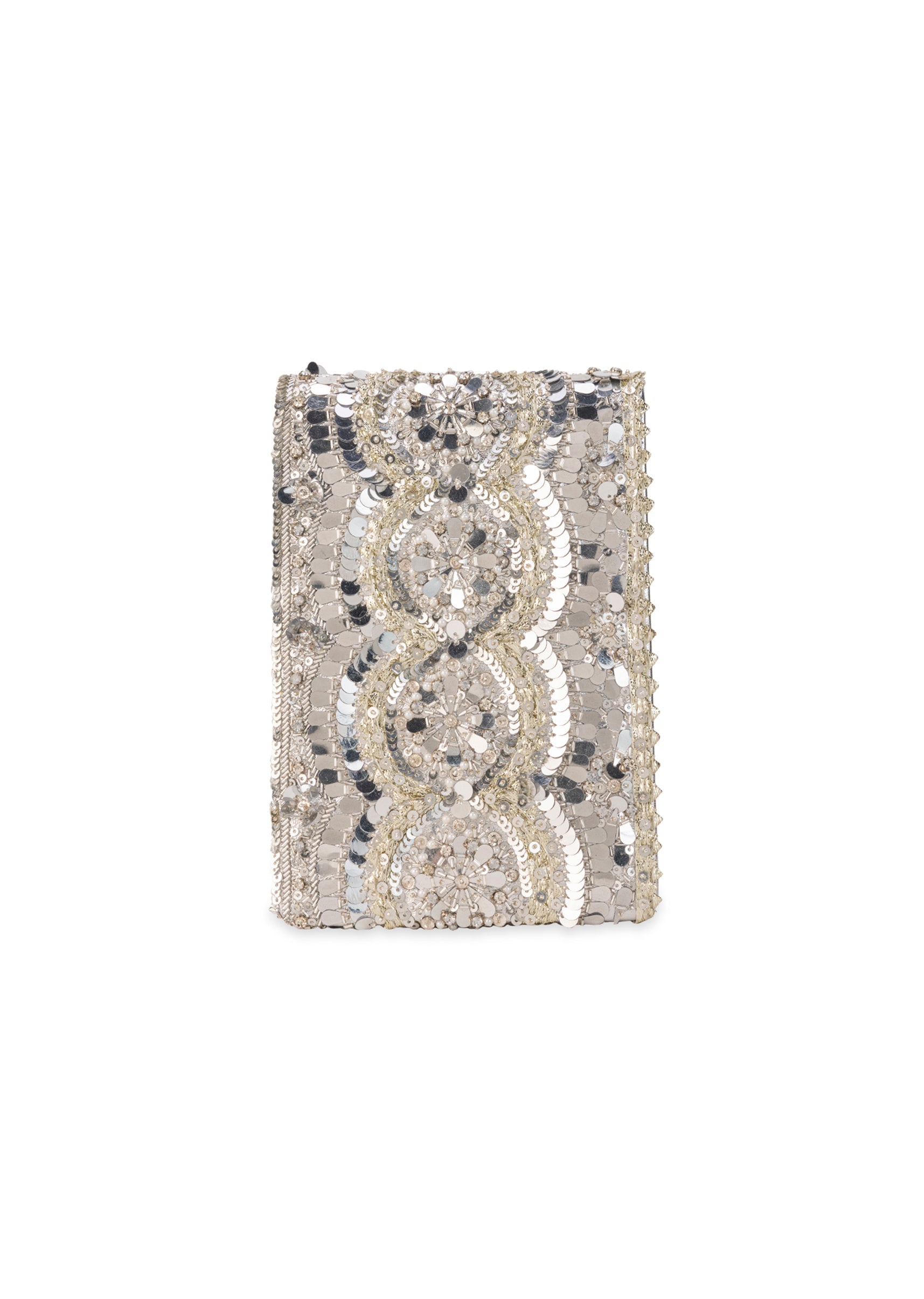 Shimmer with every step in this silver flap bag, dazzling with intricate mirror and sequin embroidery. Its radiant detailing adds instant glamour, making it a perfect pick for weddings, sangeets,... More Product Details