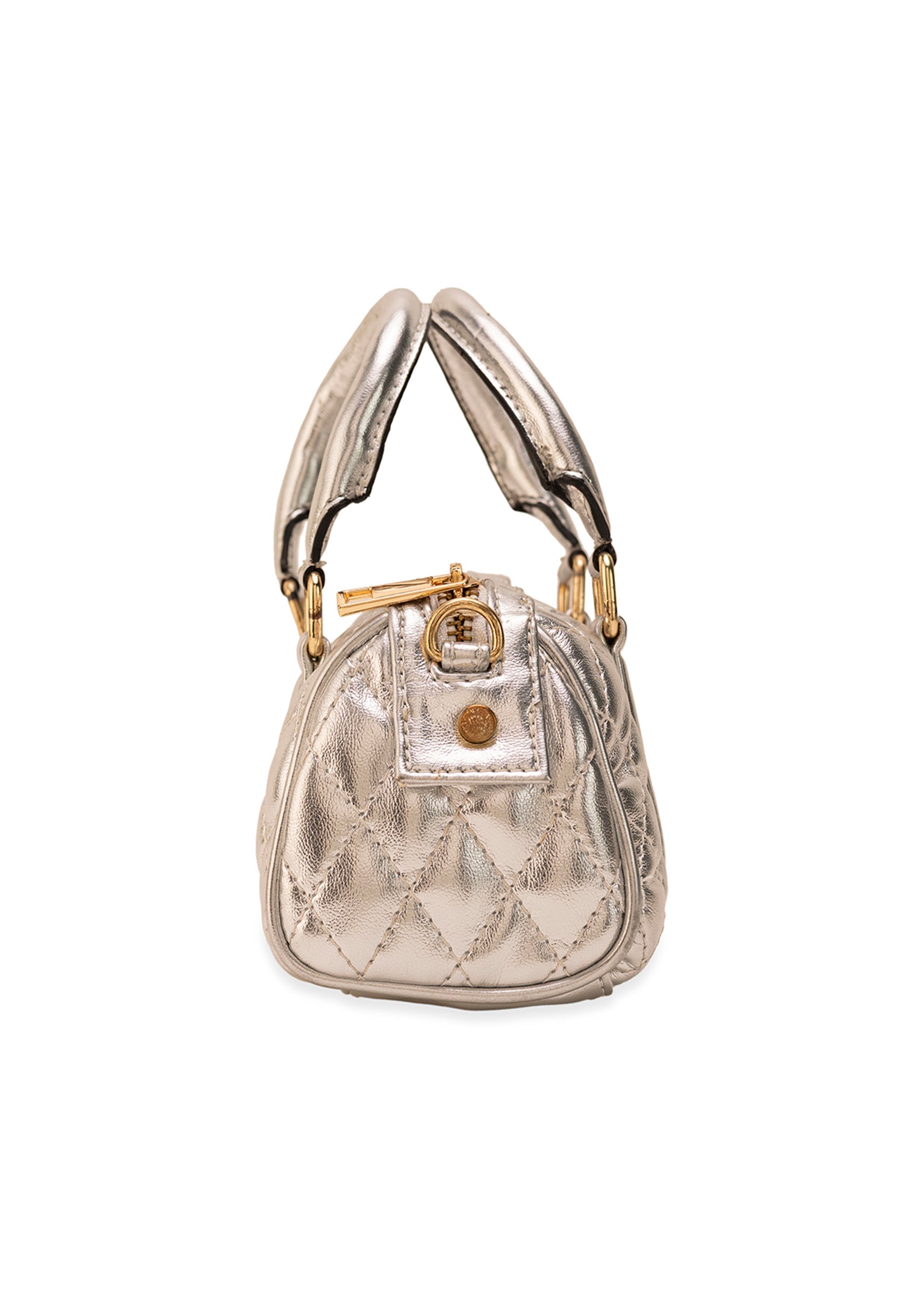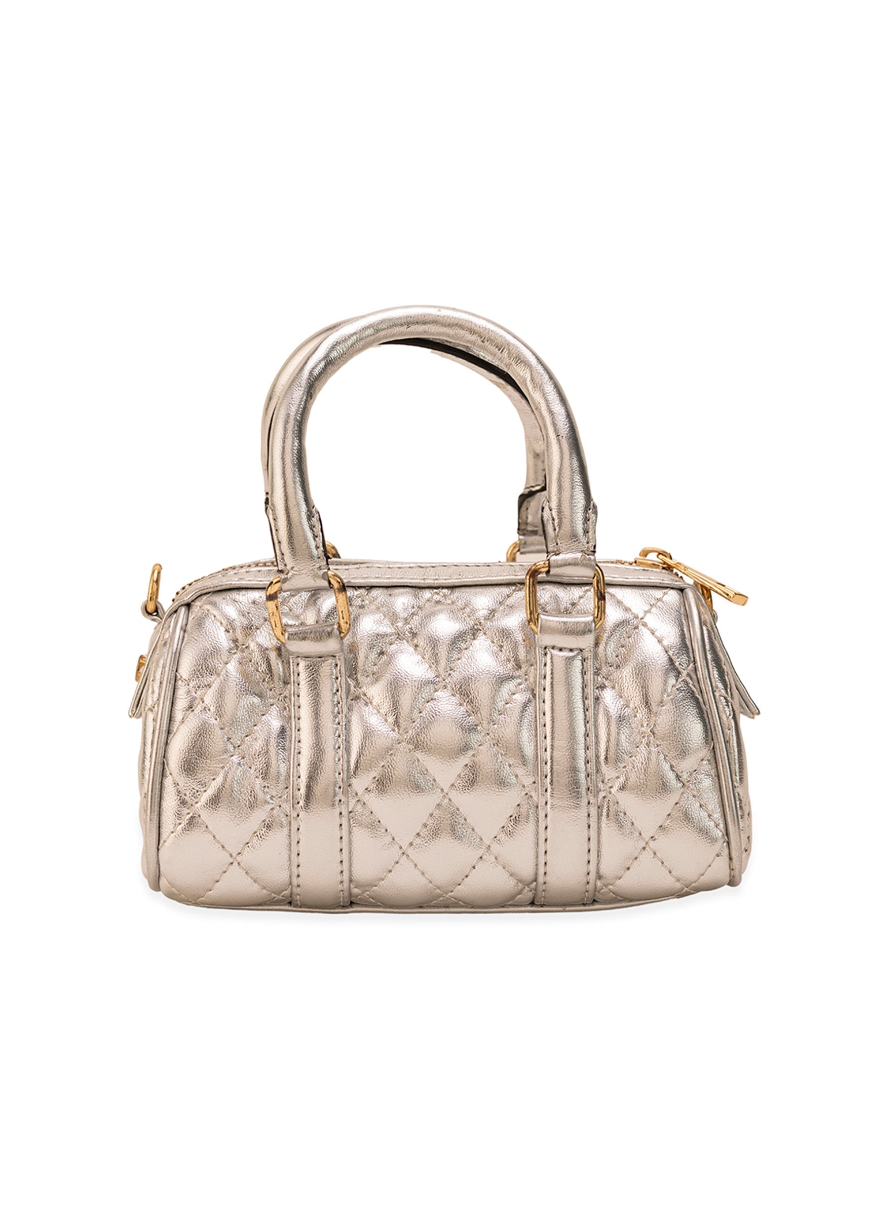 This silver bag stands out with its chic quilted texture, giving it a sleek and modern edge perfect for day to night styling. The lycra finish adds a soft sheen... More Product Details