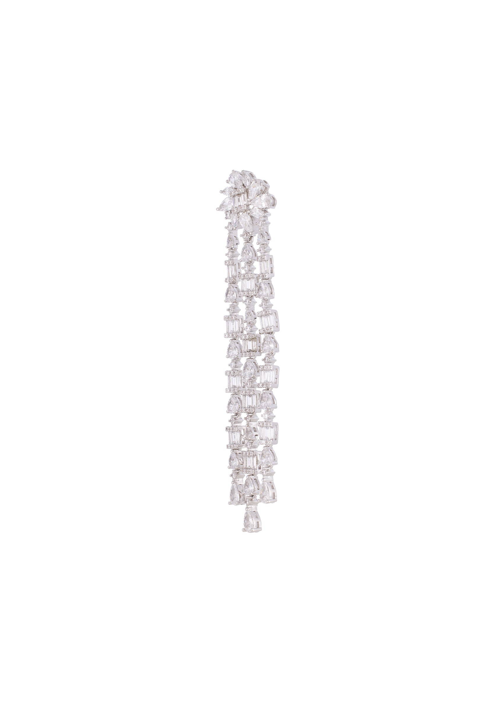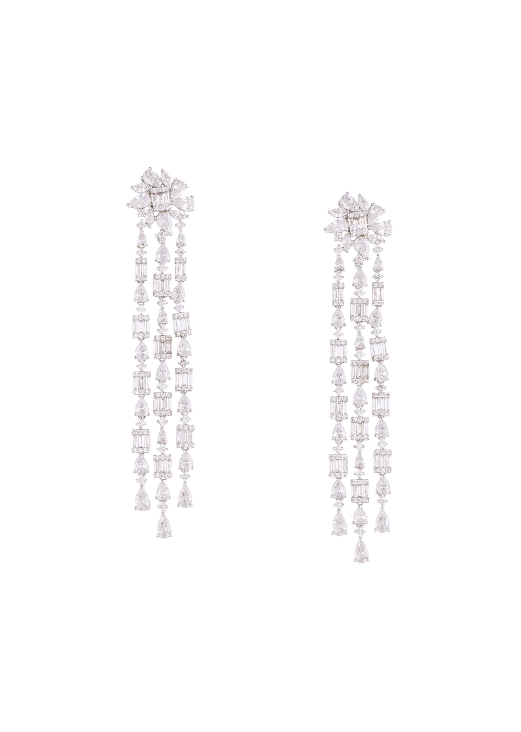 These silver and white earrings feature delicate diamond inspired detailing that adds a refined sparkle to any festive or party look. Perfect for cocktail parties, engagements, sangeet functions, and bridesmaids... More Product Details
