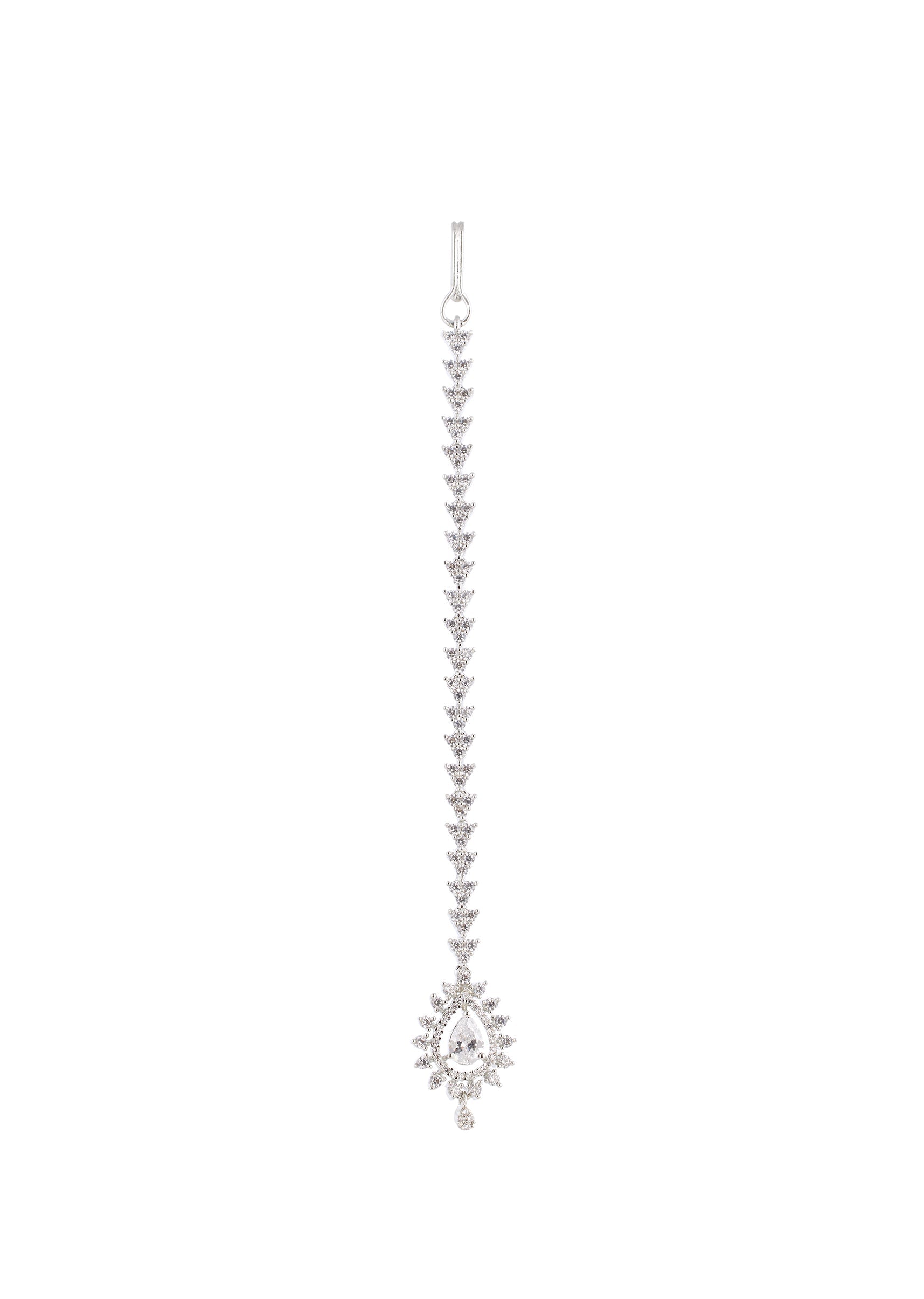 This silver and white maangtikka features delicate craftsmanship that adds a subtle sparkle and refined charm to your look. Its balanced design ensures it sits comfortably while enhancing the hairline... More Product Details