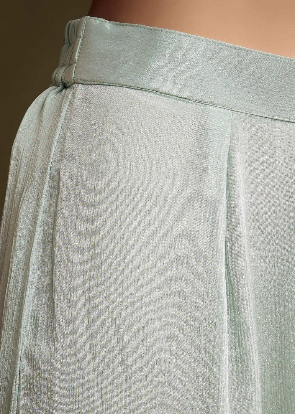 The kurta should feel light and unrestrictive, while the sharara sits securely at mid-waist with a fluid, comfortable flare.