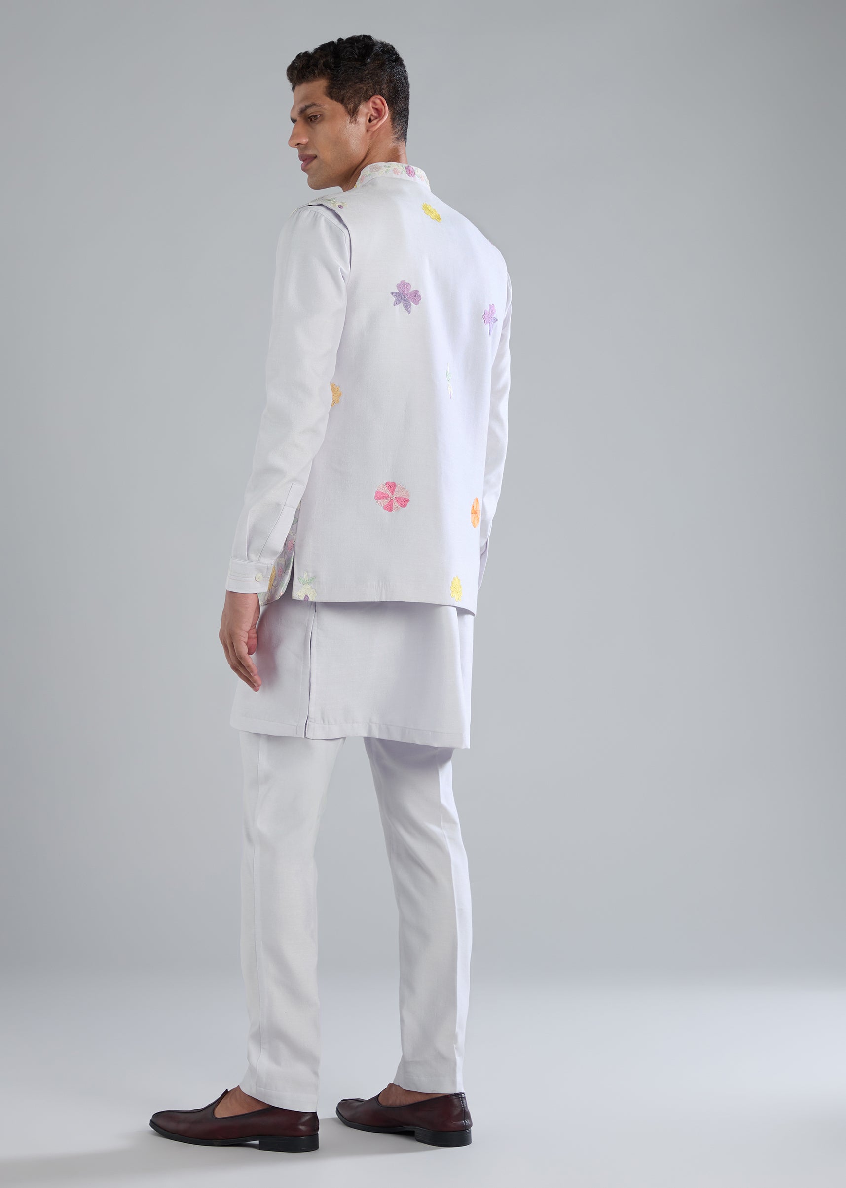 Sky Blue Kurta Jacket Set With Dori Work Detailing