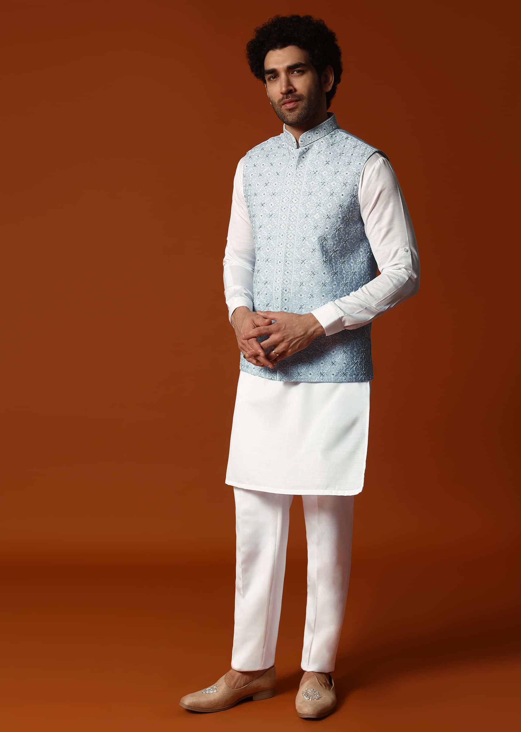- Discover the enchanting appeal of our sky blue kurta jacket set, perfect for sangeet and wedding events.