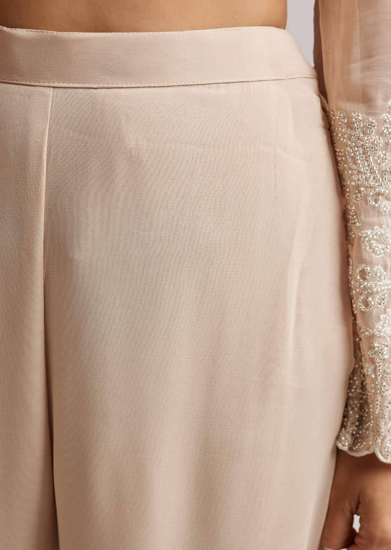 Soft Peach Beaded Kurti Pant Set With Dupatta