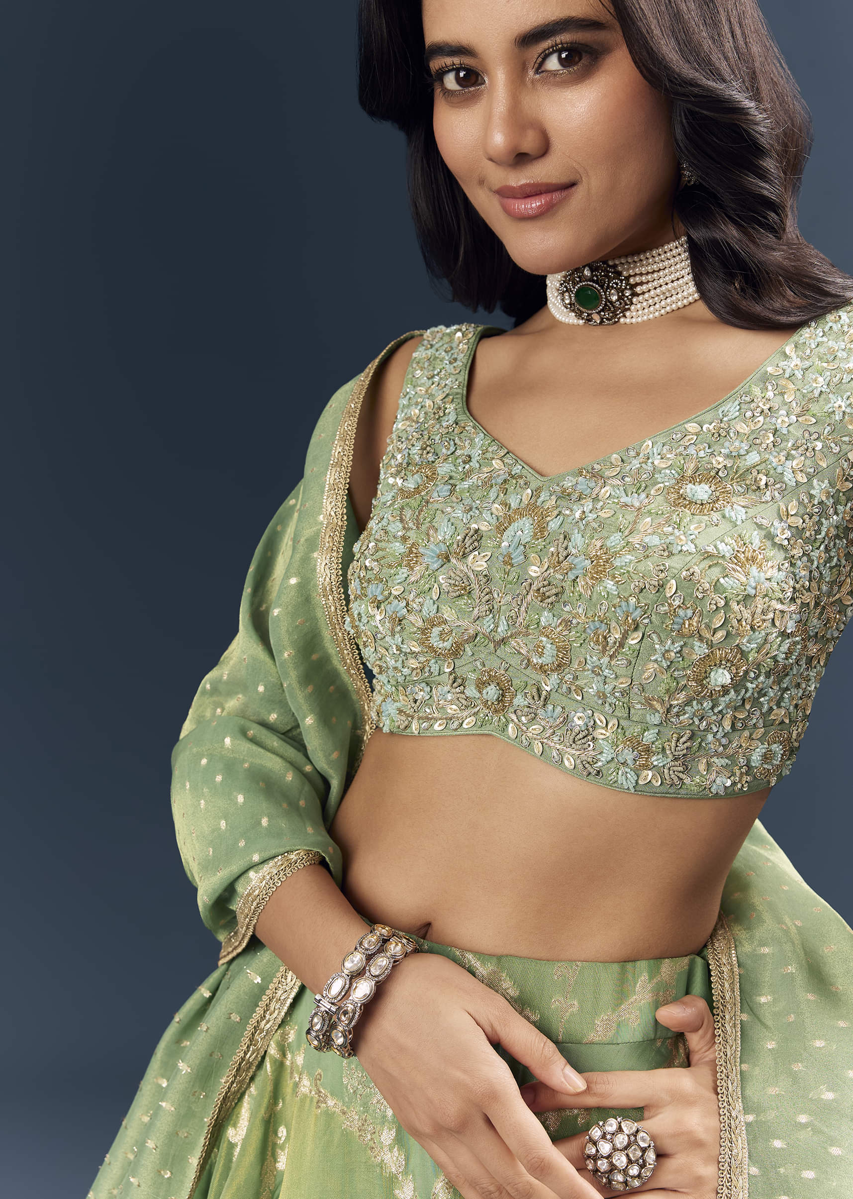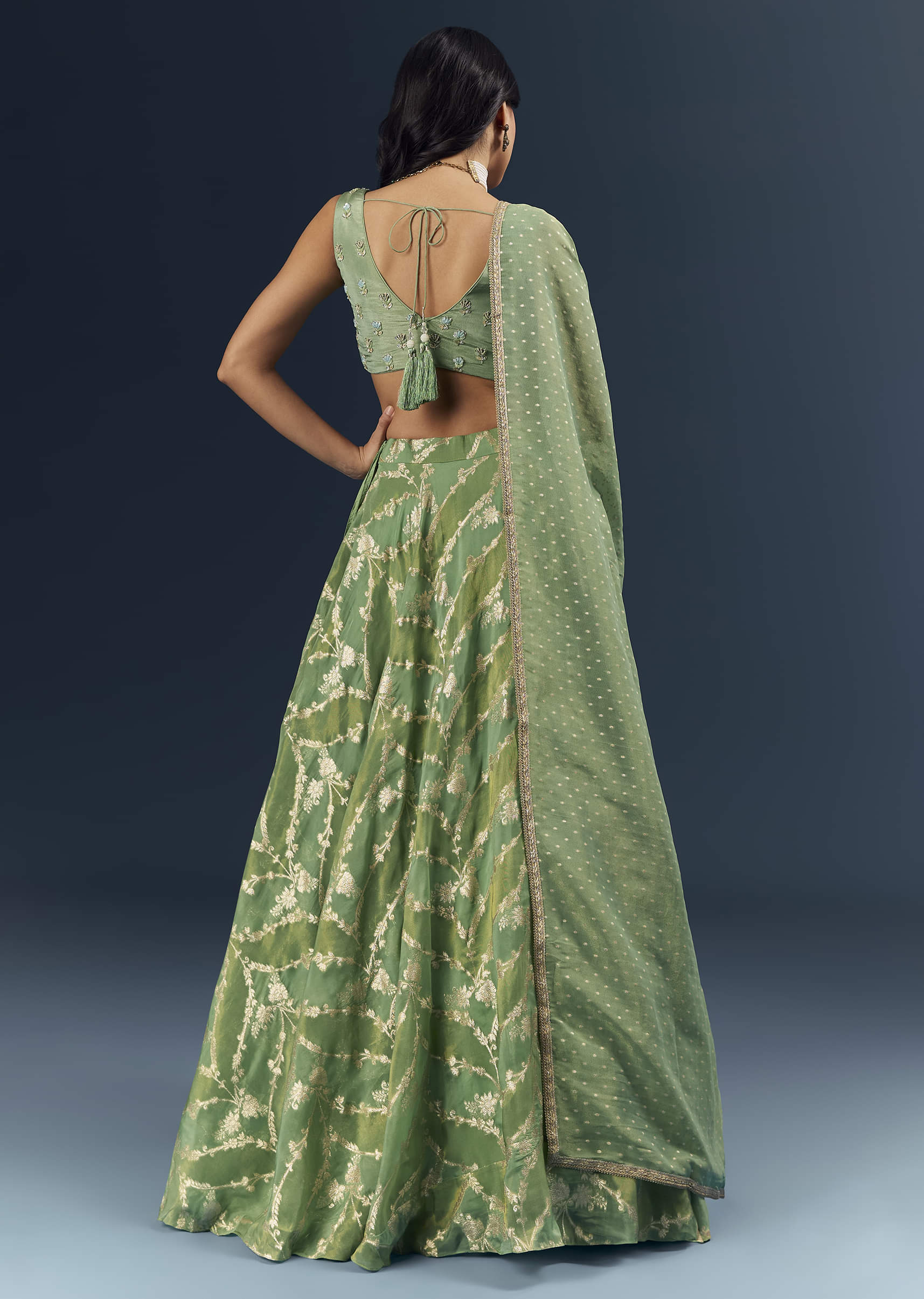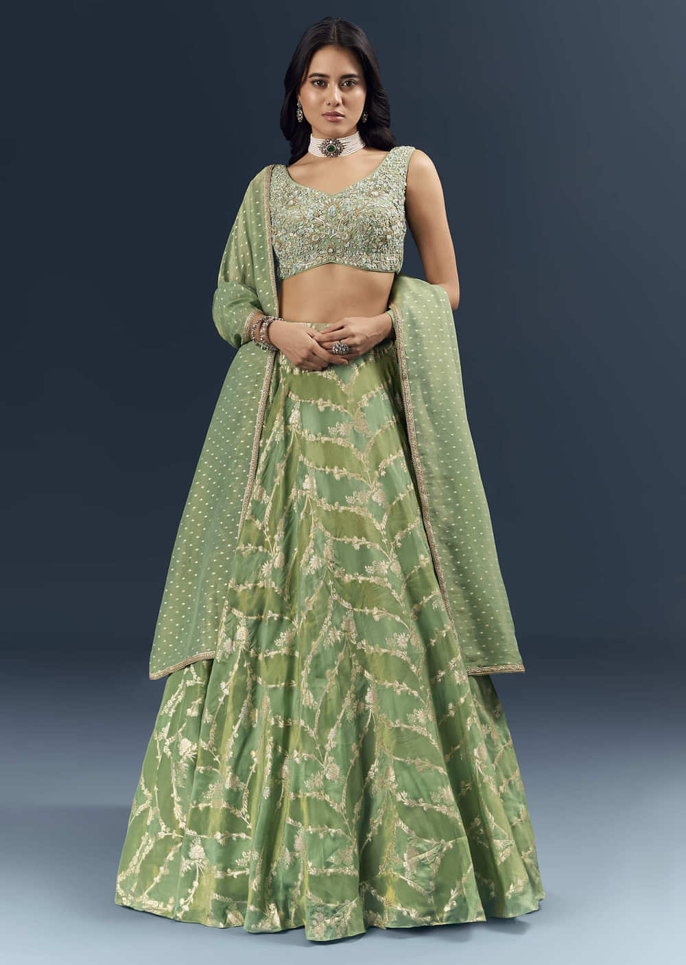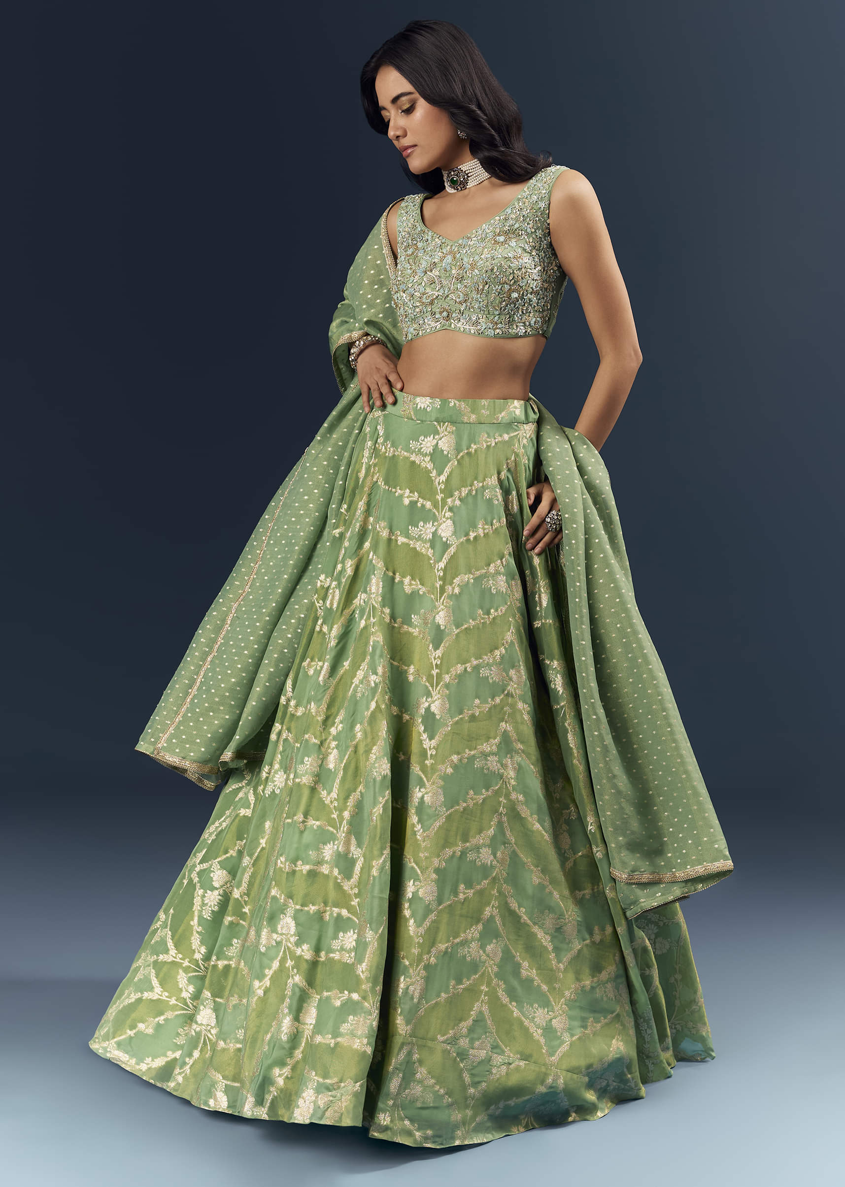 Spa Green Banarasi Silk Bridesmaid Lehenga With Heavy Hand Embroidery