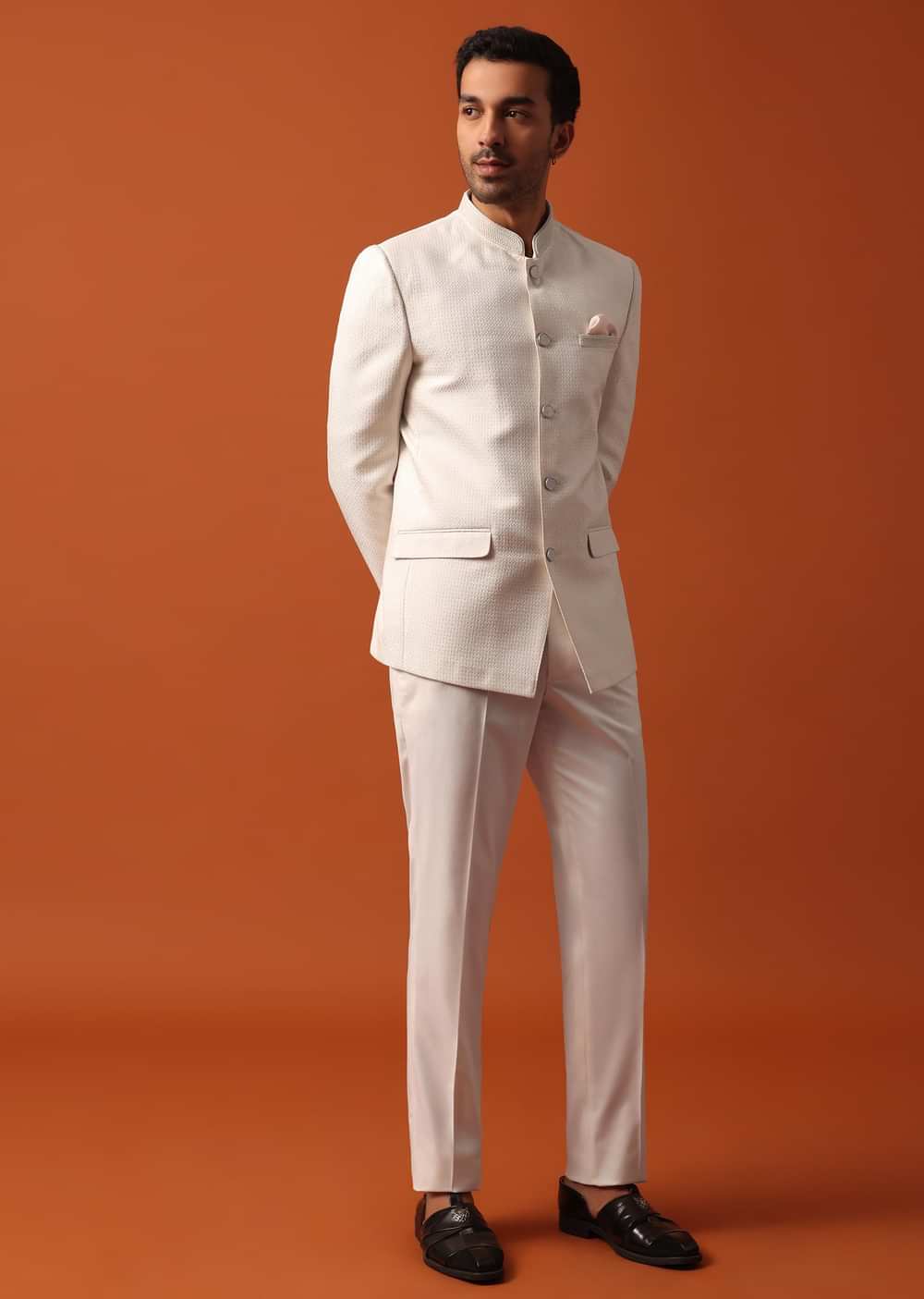 - Unveil refined charm at weddings and receptions with our White Bandhgala Jodhpuri Suit.