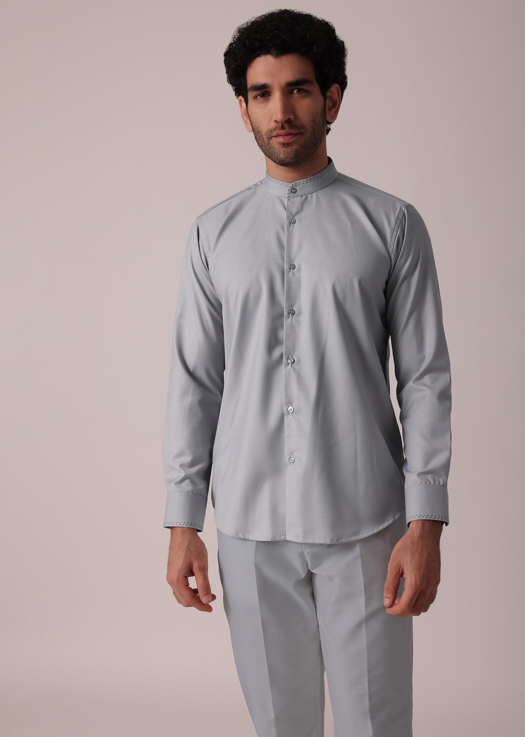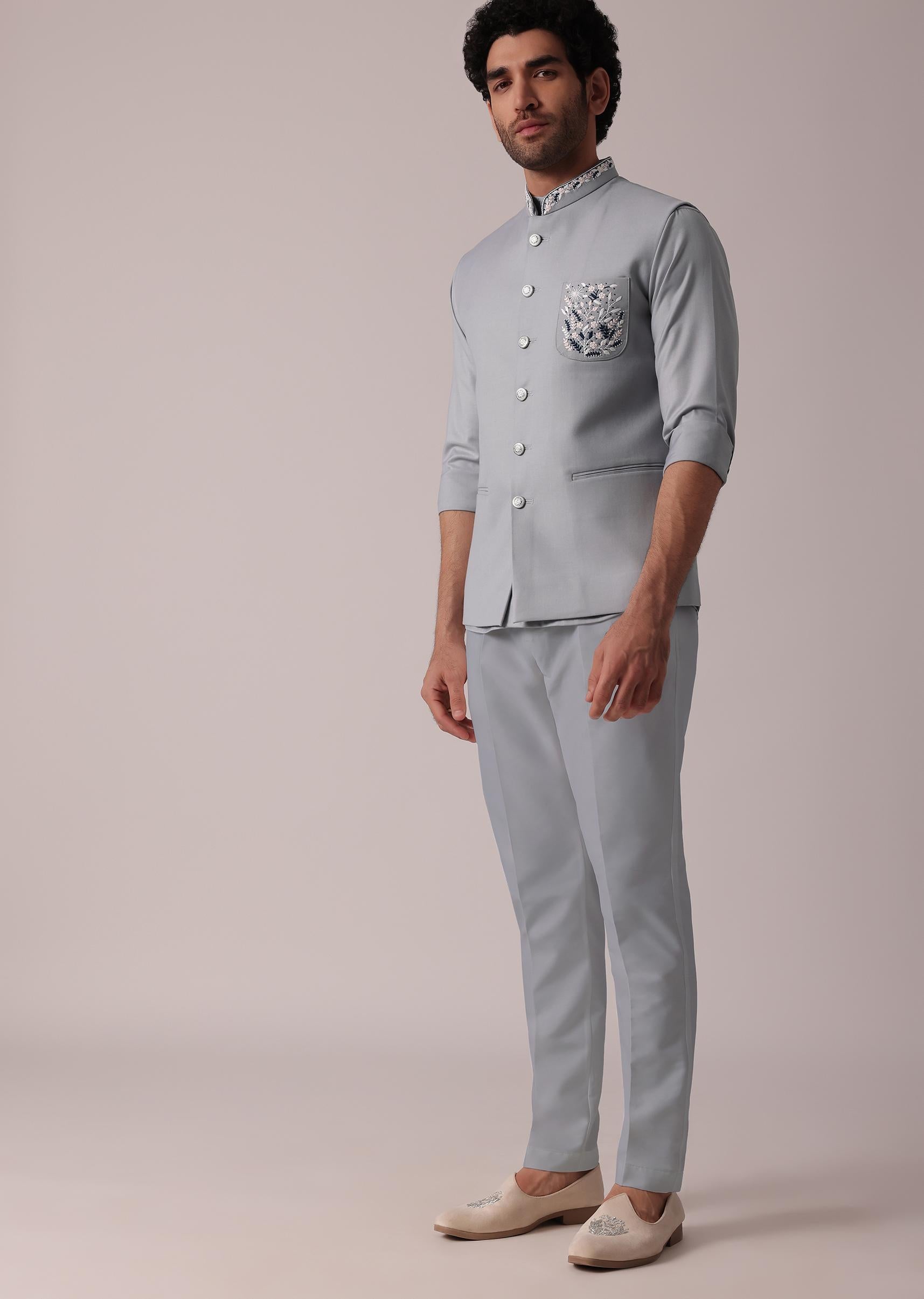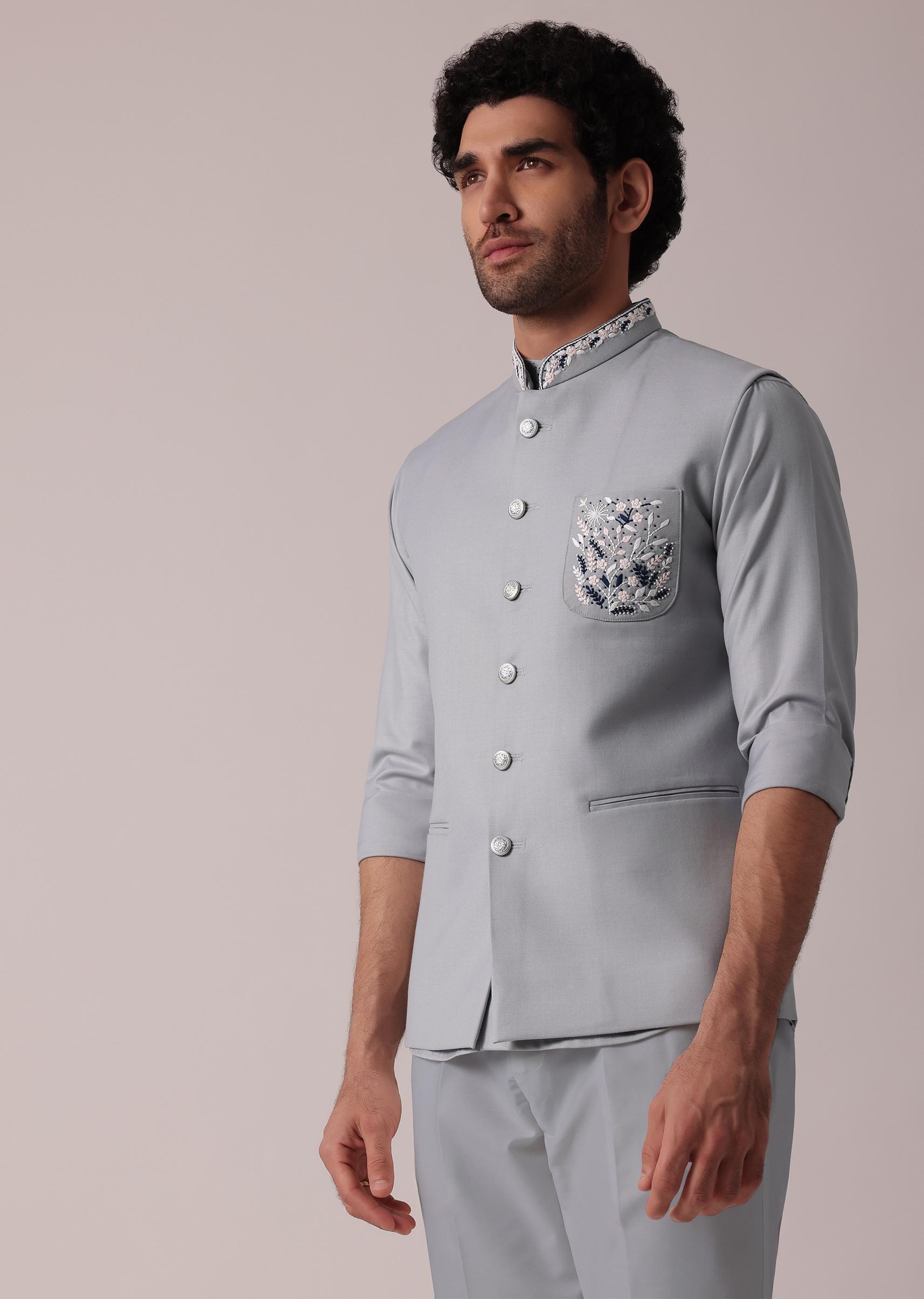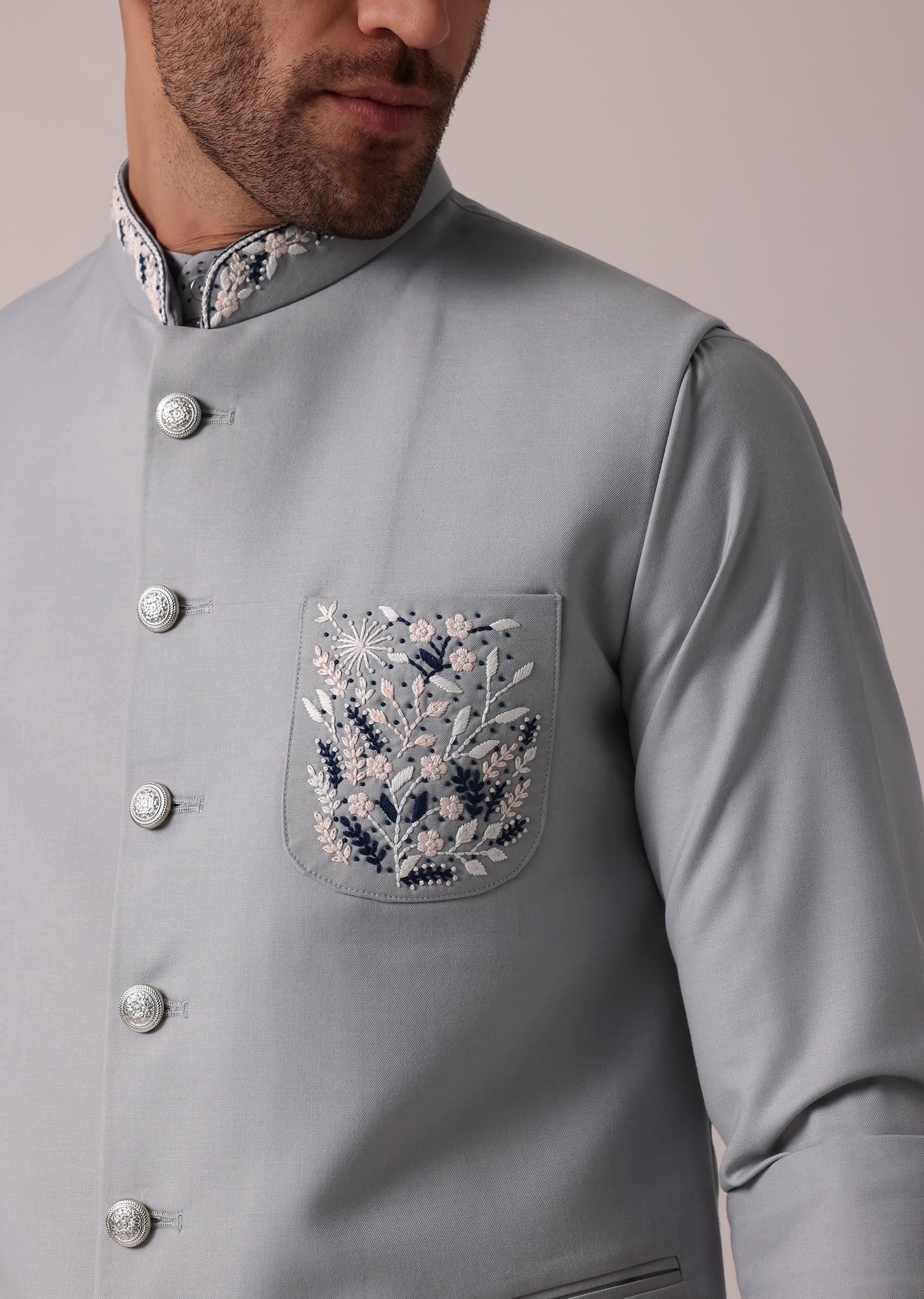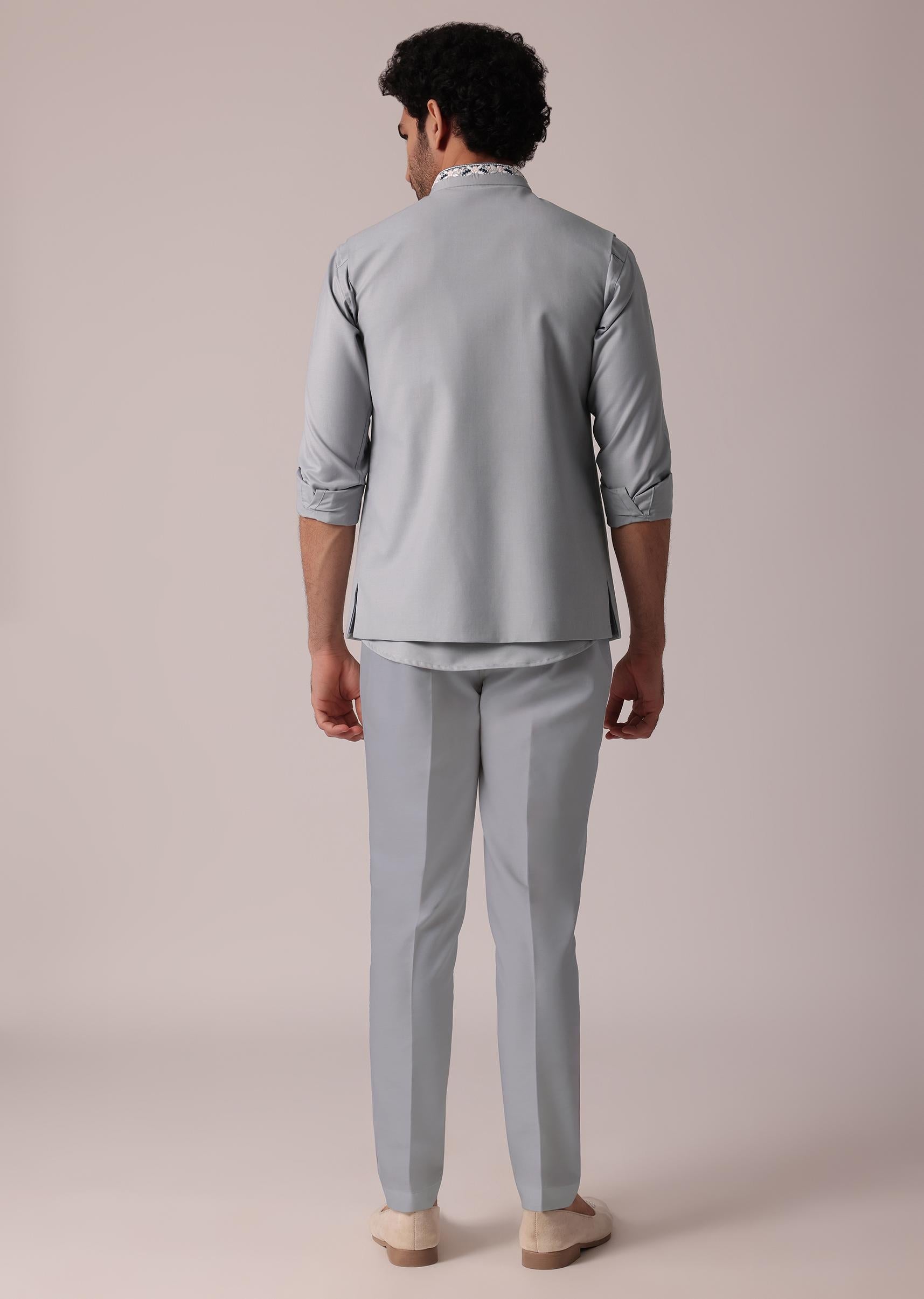 Stylish Grey Short Kurta With Embroidered Matching Bandi