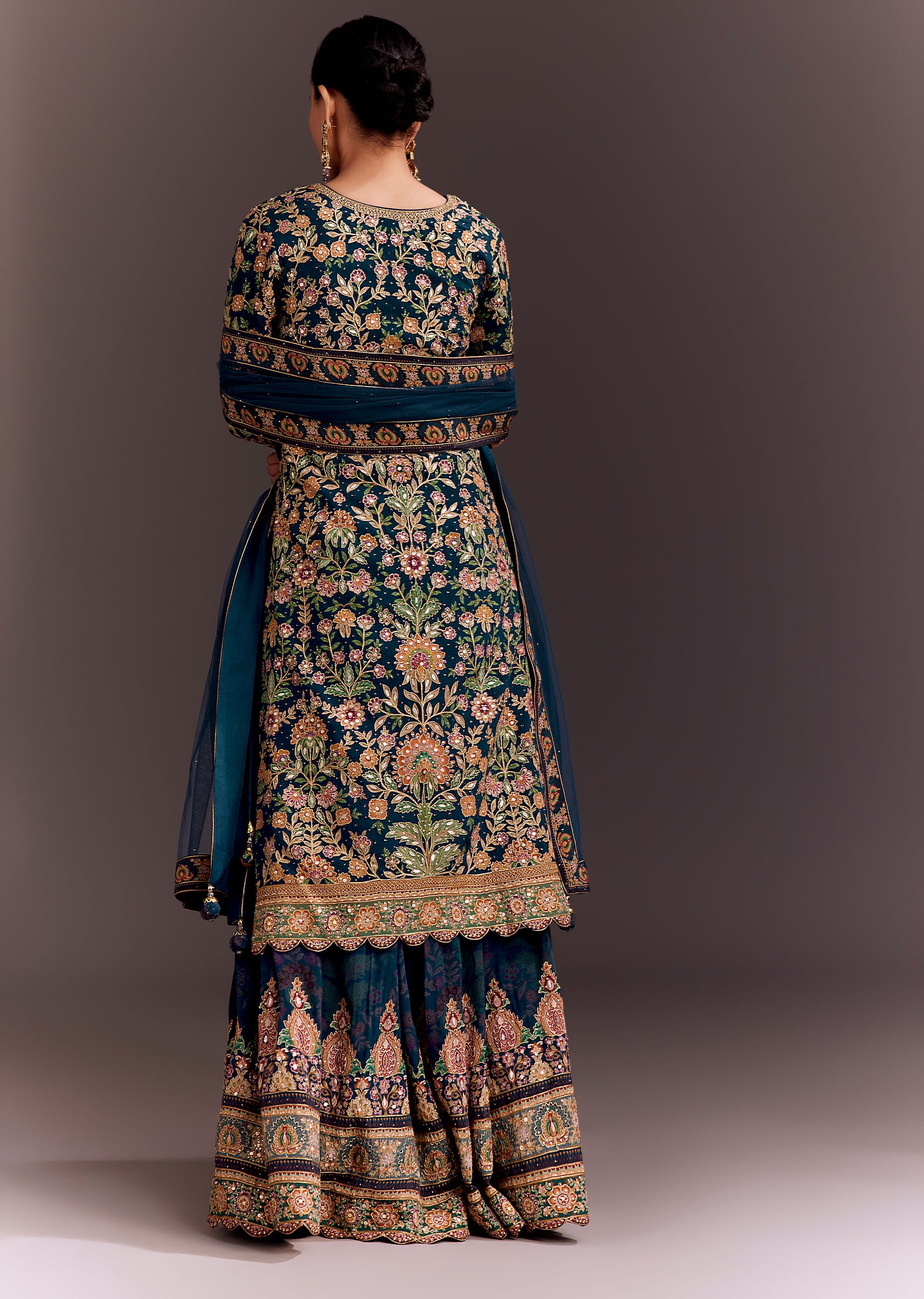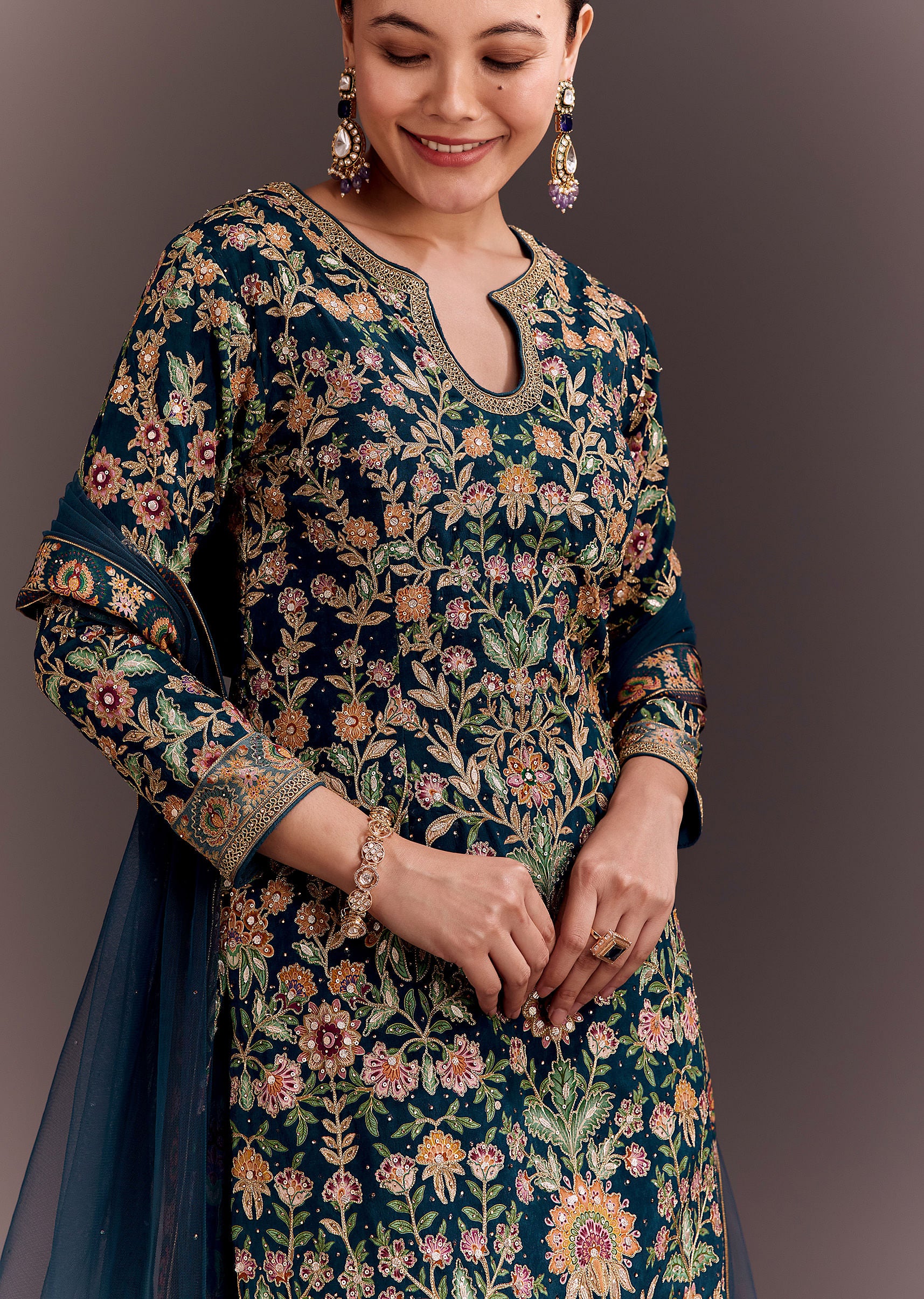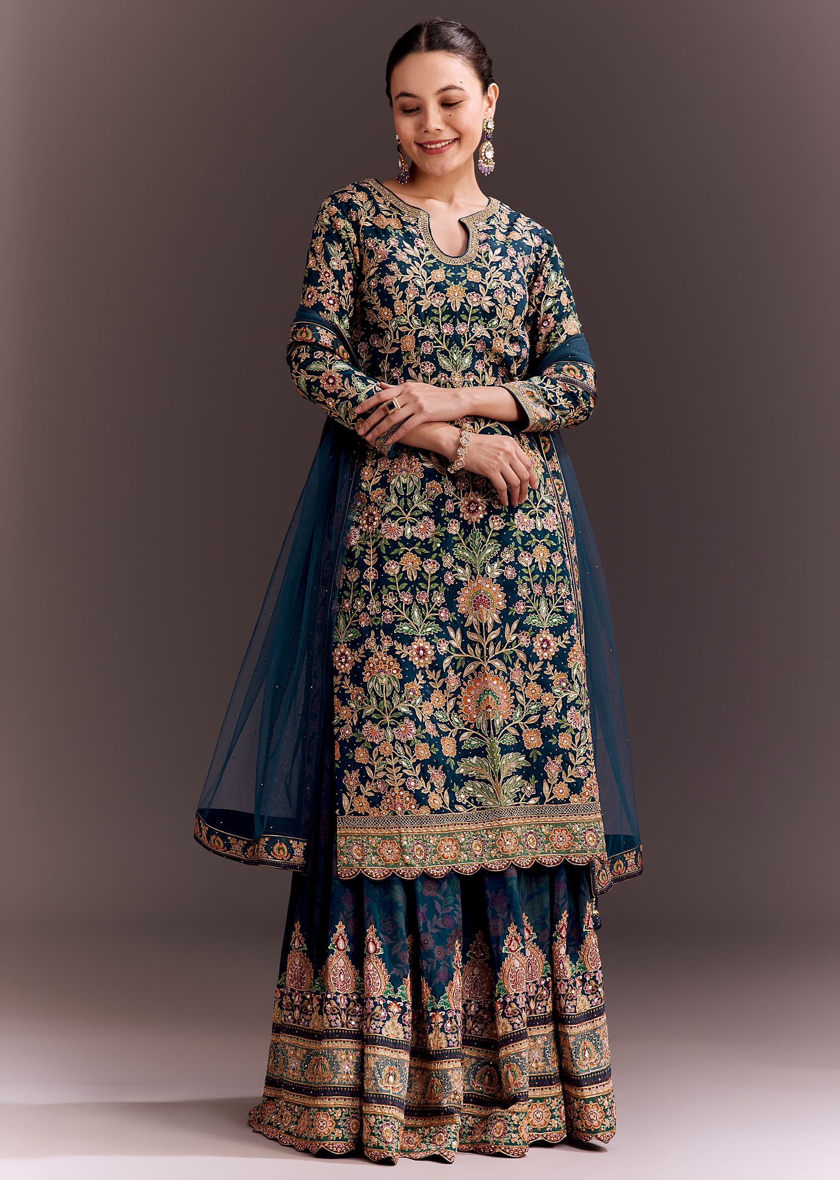 Teal Blue Embroidered Palazzo Set