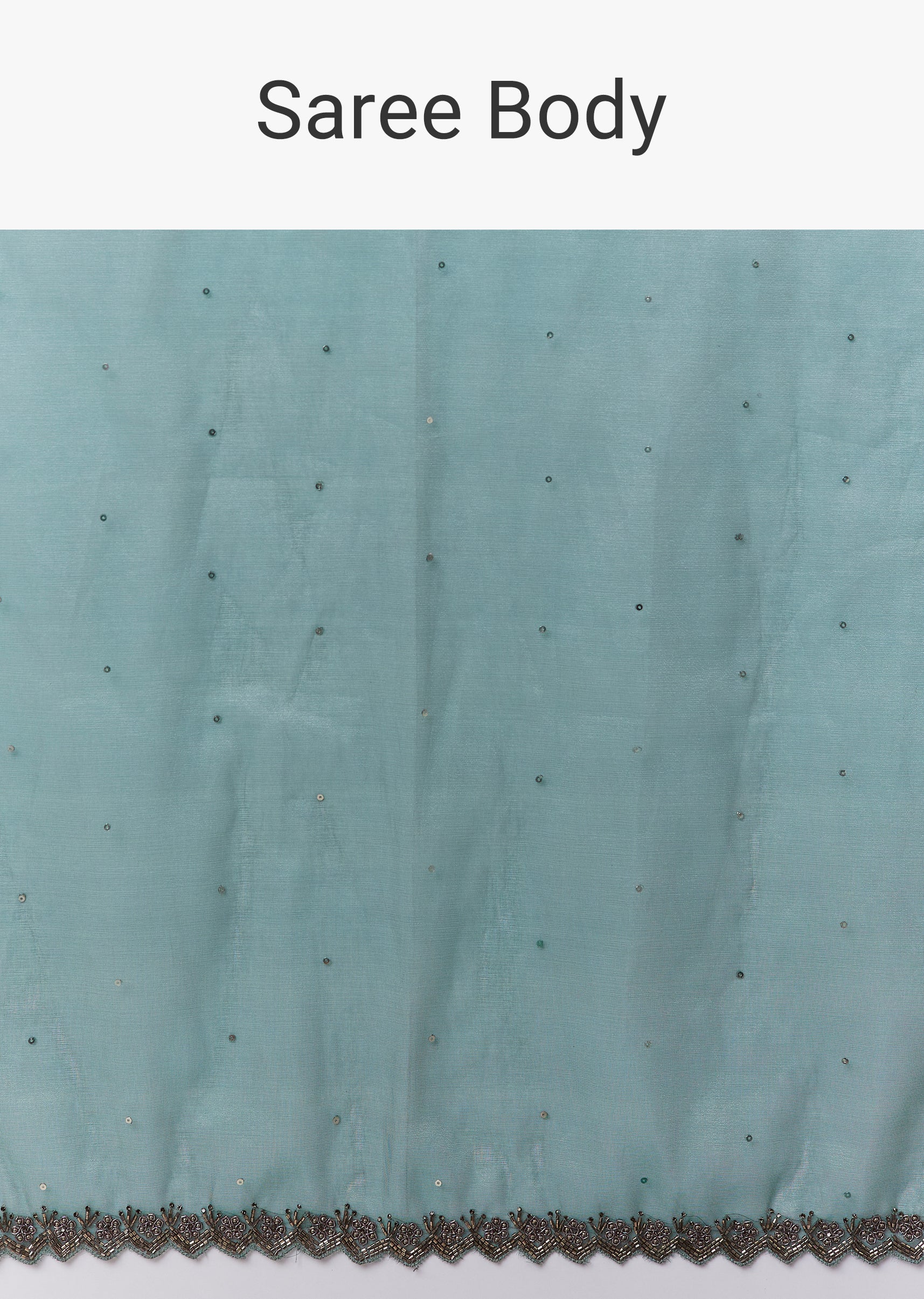 Teal Blue Net Saree With Zigzag Cutwork Border And Sequin Embroidery