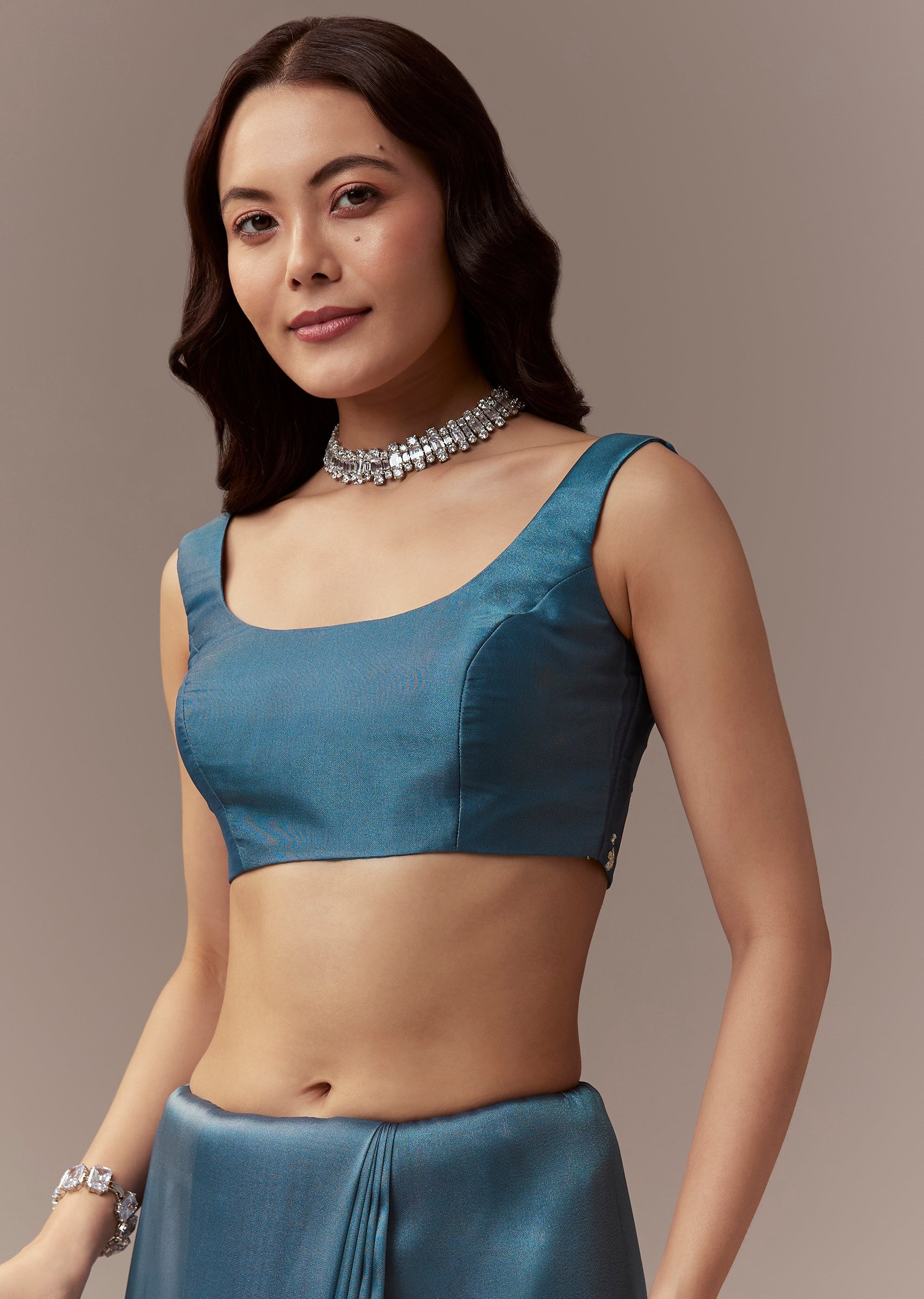 Teal Blue Organza Saree With Cutdana Beads And Sequin Embroidery