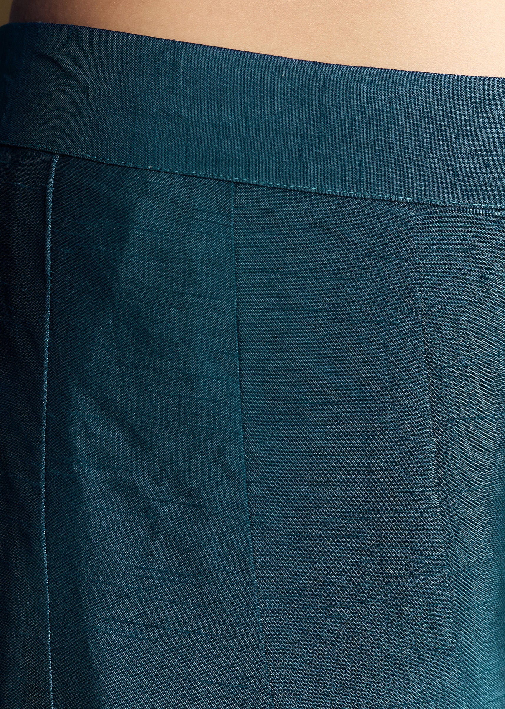 Teal Blue Silk Palazzo Suit With Moti Accents