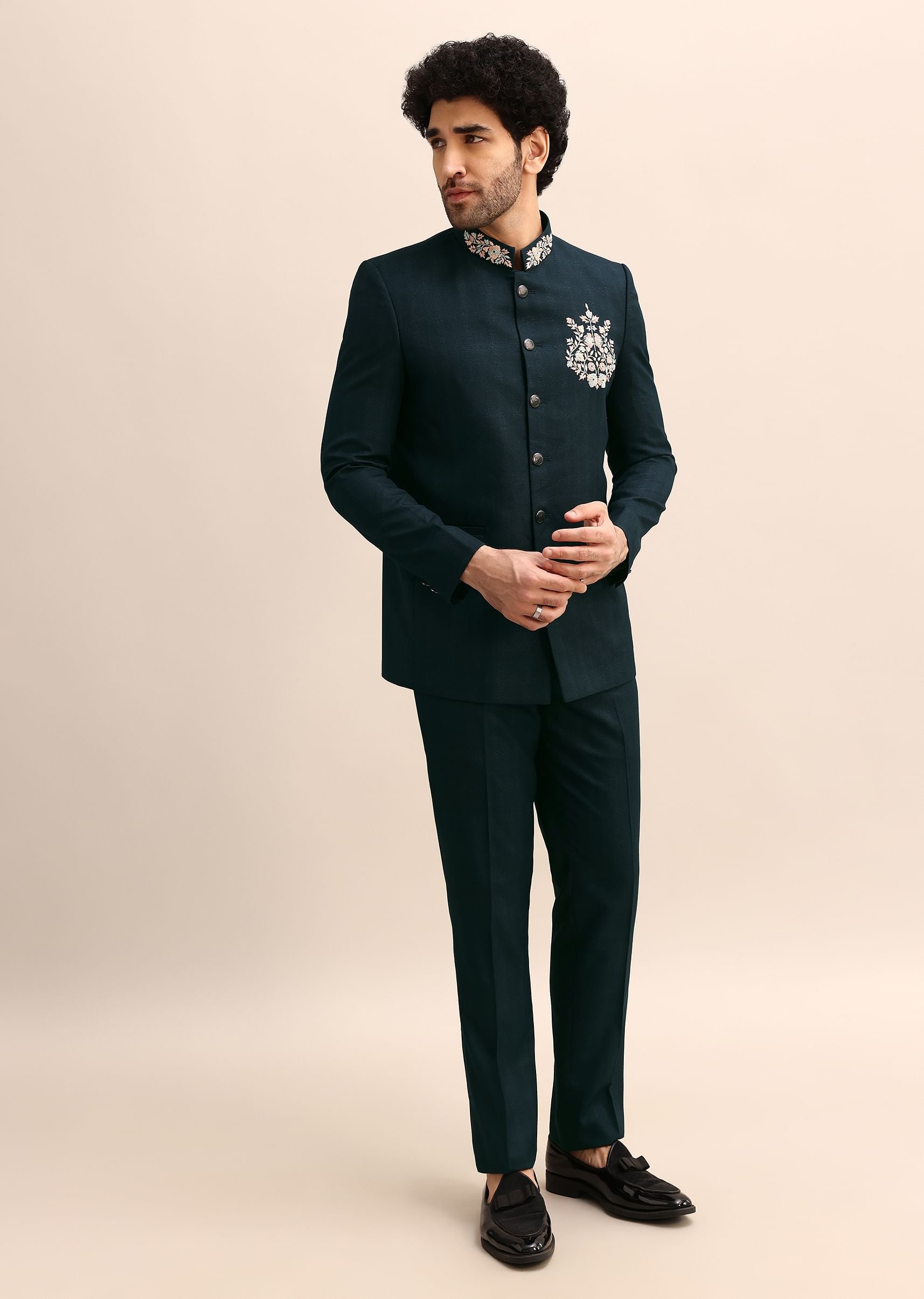 - Impress at weddings and receptions with a captivating teal Jodhpuri suit.