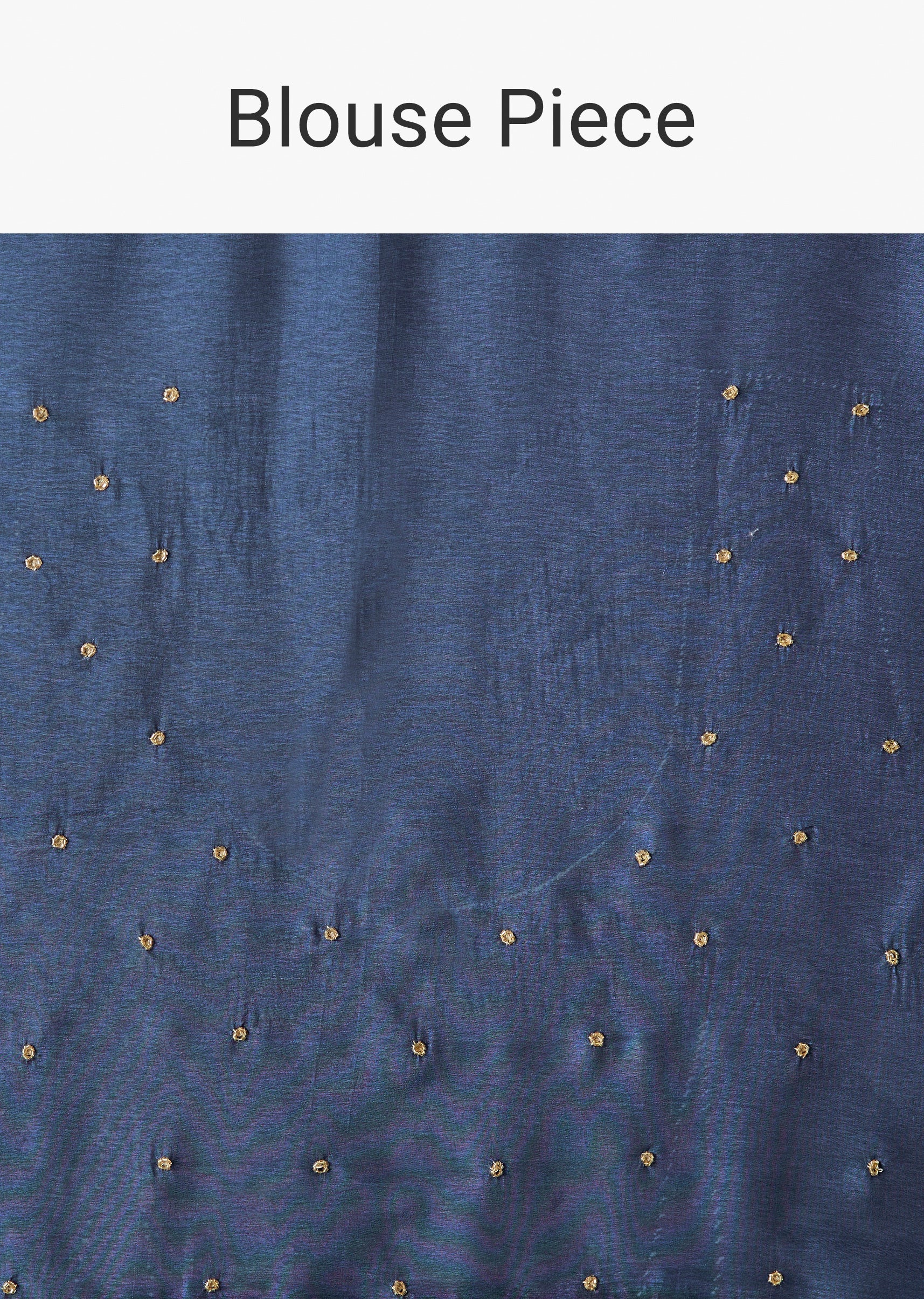 Teal Blue Tissue Saree With Floral Print And Embroidered Border