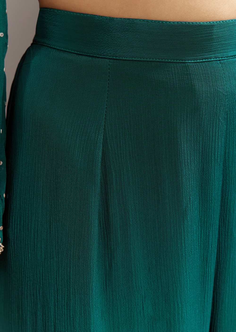 Teal Green Cutdana And Sequins Kurta Sharara With Dupatta