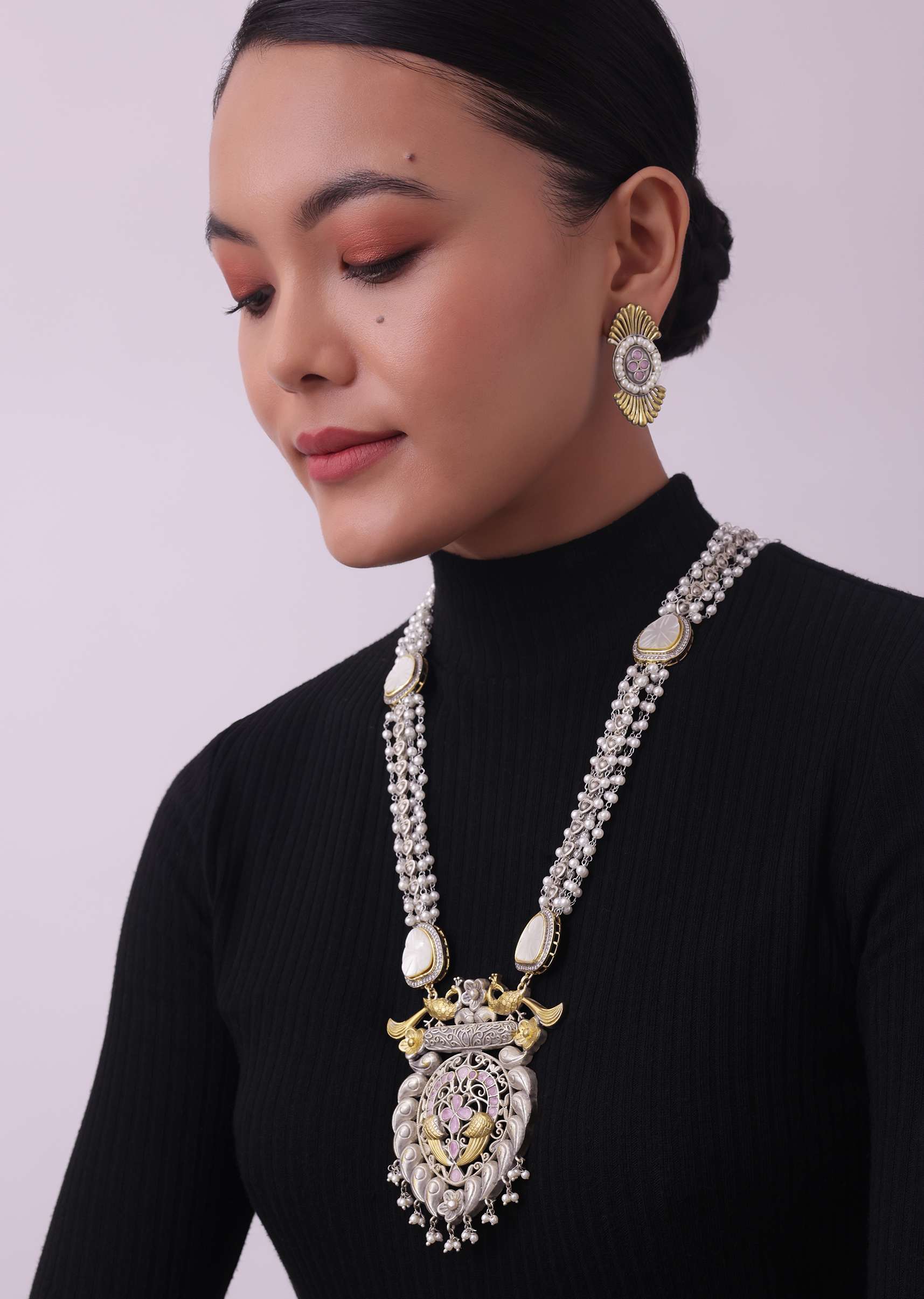 - Indulge in the blend of tradition and luxury with our exquisite long necklace set adorned with captivating oxidized detailing in a fusion-inspired style.