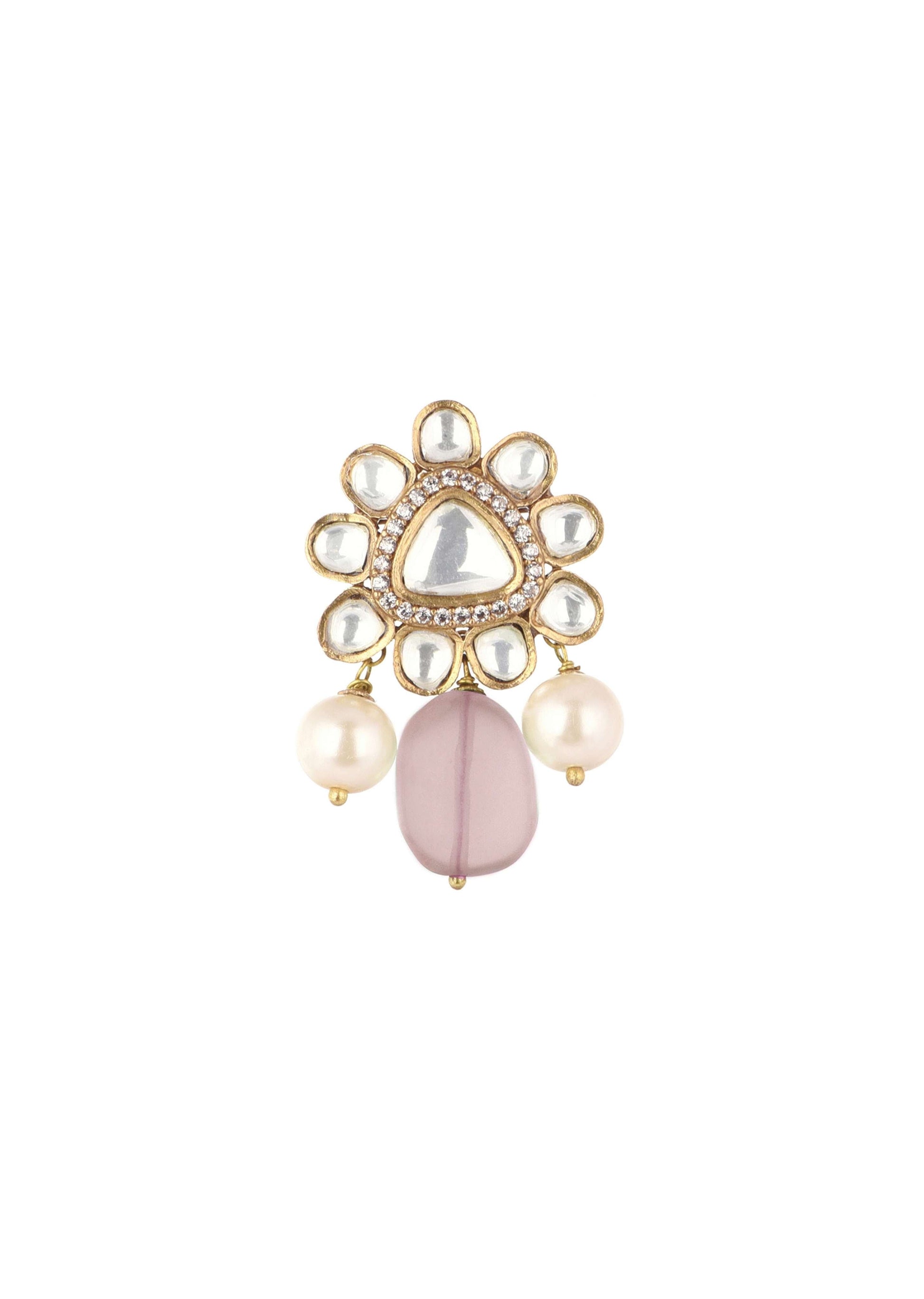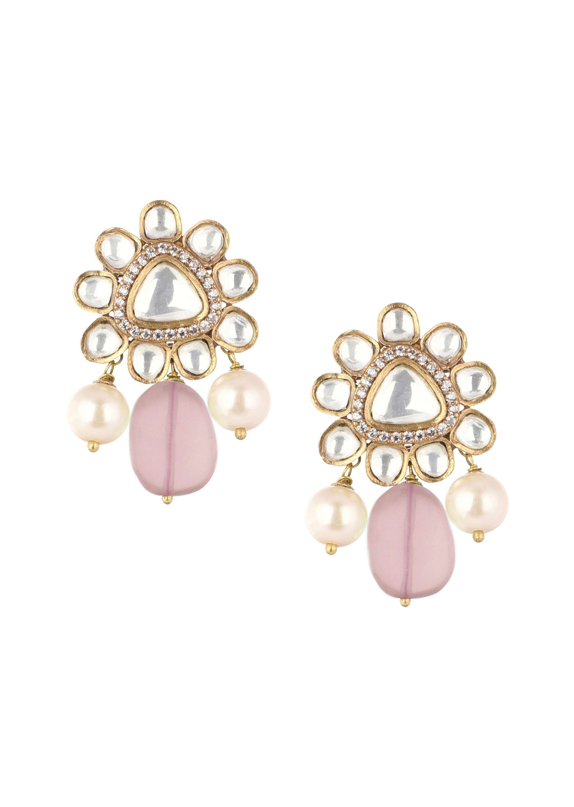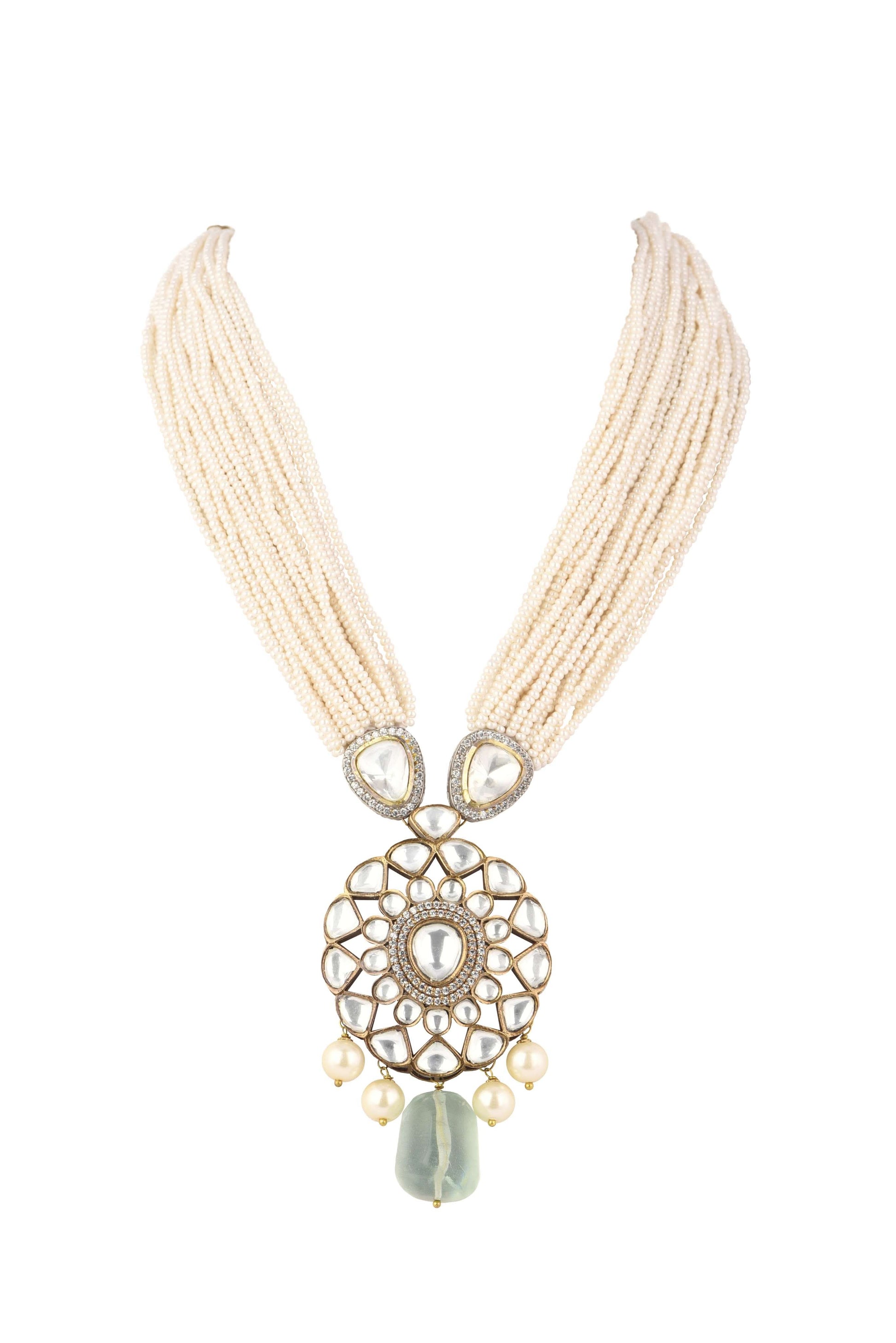 - This set combines the timeless allure of kundan craftsmanship with the brilliance of synthetic stones and delicate pearl drops.
