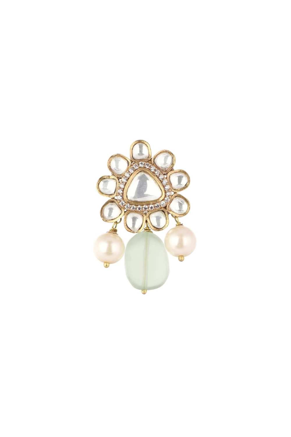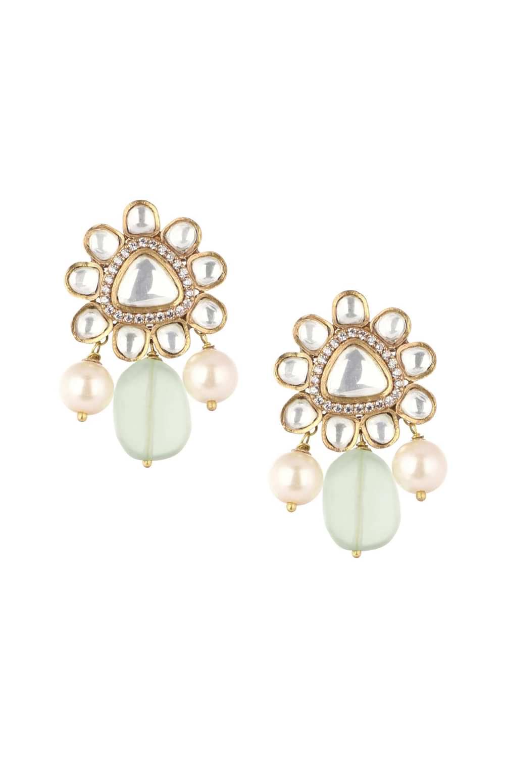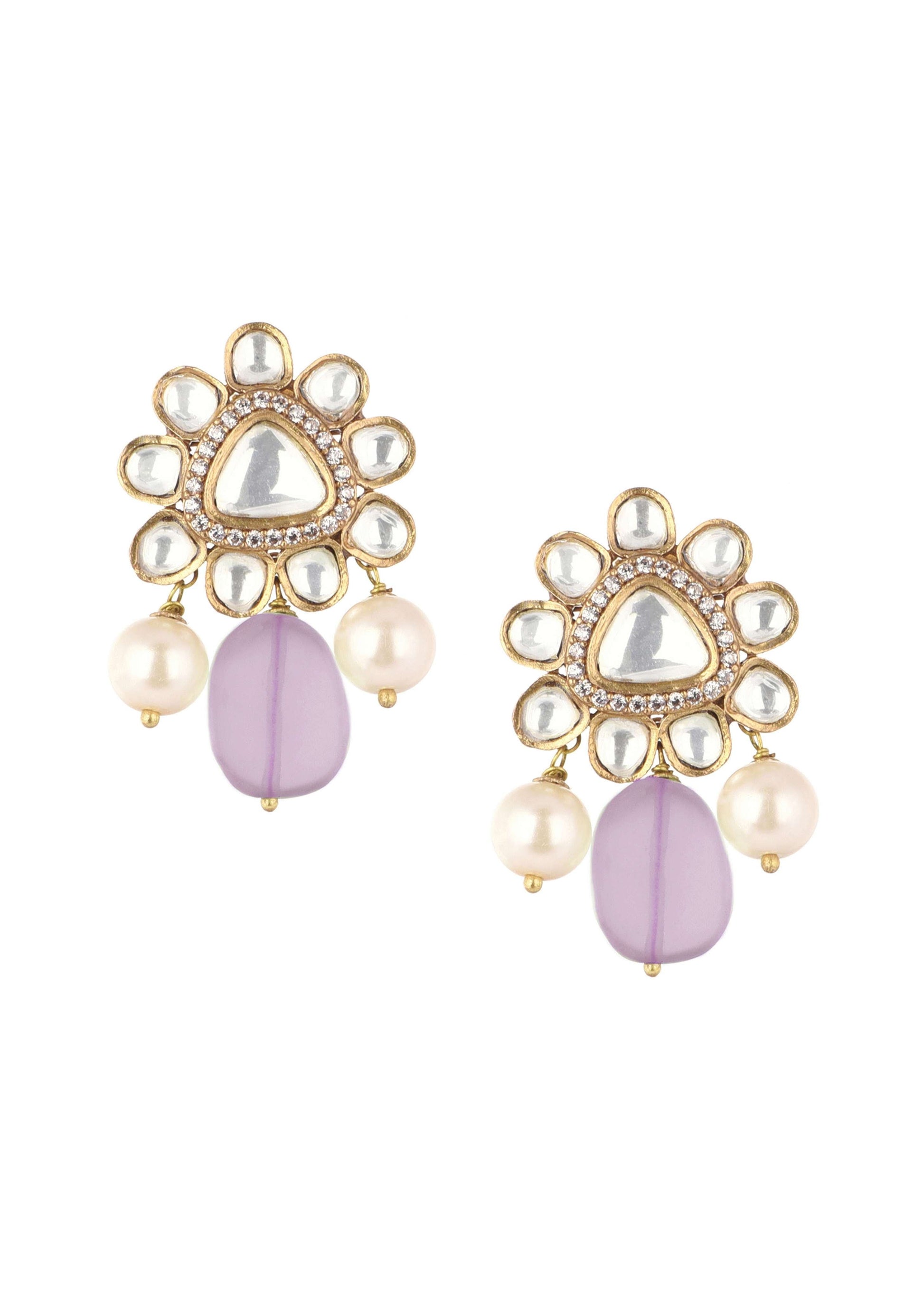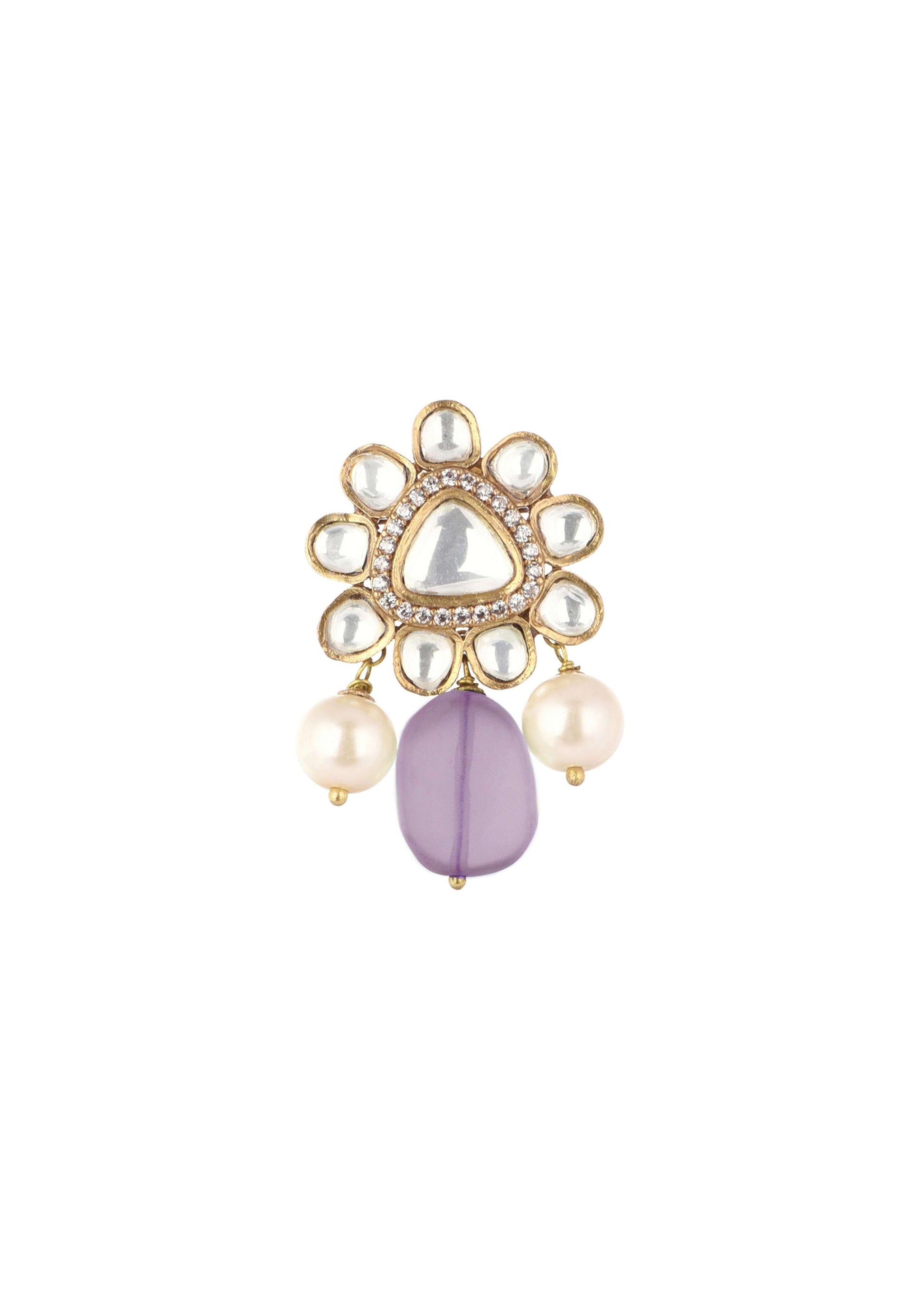 - This set combines the timeless allure of kundan craftsmanship with the brilliance of synthetic stones and delicate pearl drops.