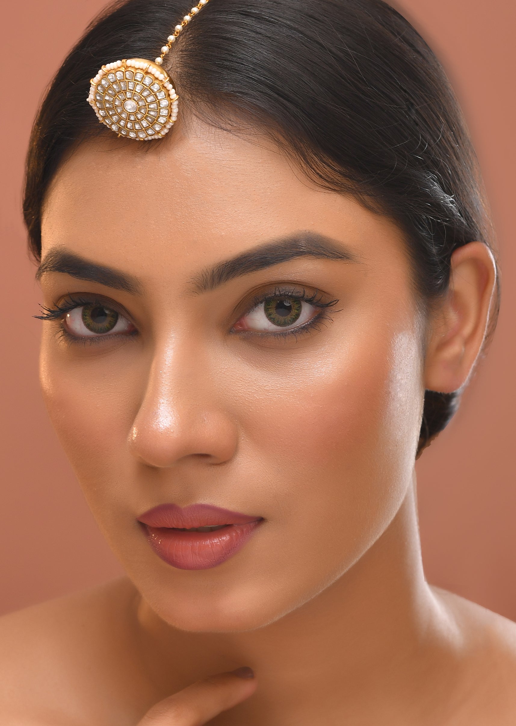 An elegant white and gold kundan maangtikka featuring finely set stones and traditional craftsmanship, designed to bring a touch of royal sophistication to your bridal or festive look. Awarded as the Most Trusted Brand, we're delivering styles you love, just as promised.