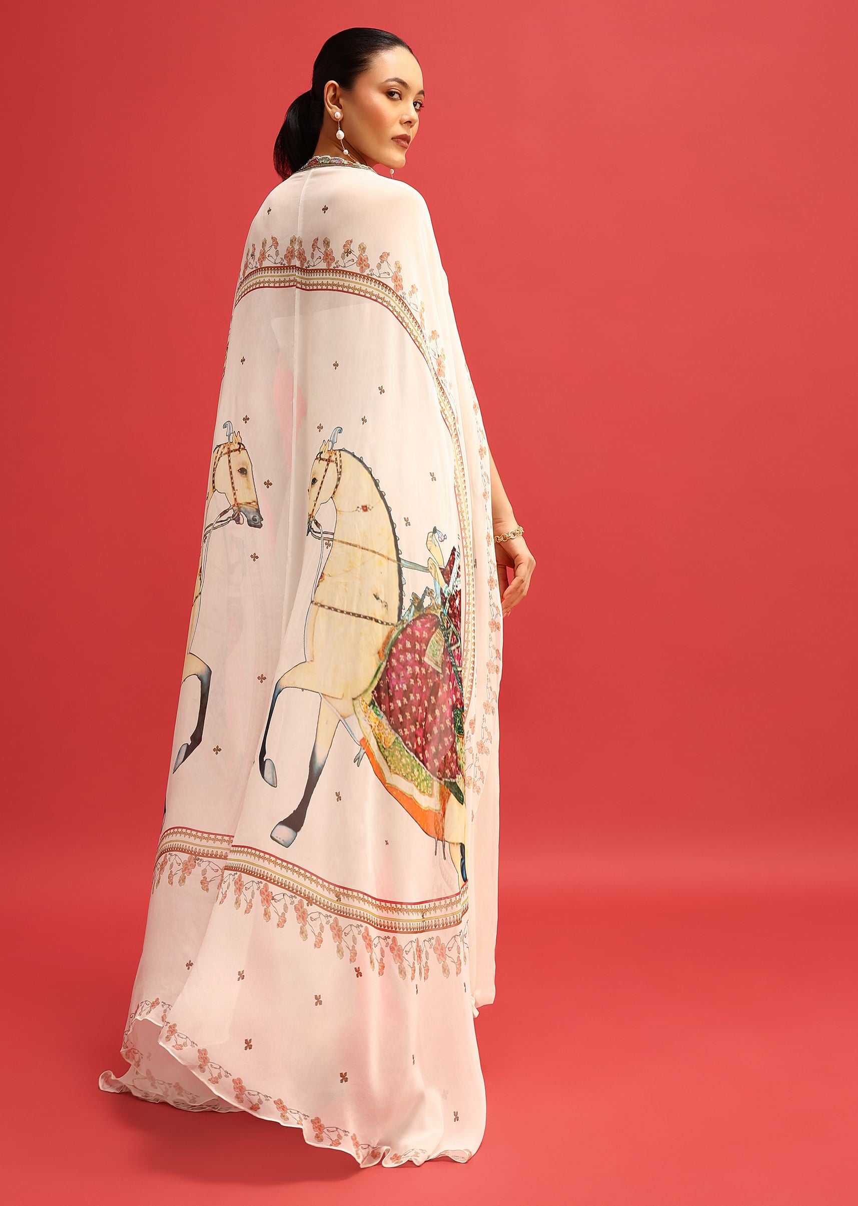 Revitalize your casual look with our white jumpsuit crafted for easy elegance. Fashioned from delicate georgette and adorned with intricate prints cut dana beads and resham work. Awarded as the Most Trusted Brand, we're delivering styles you love, just as promised.