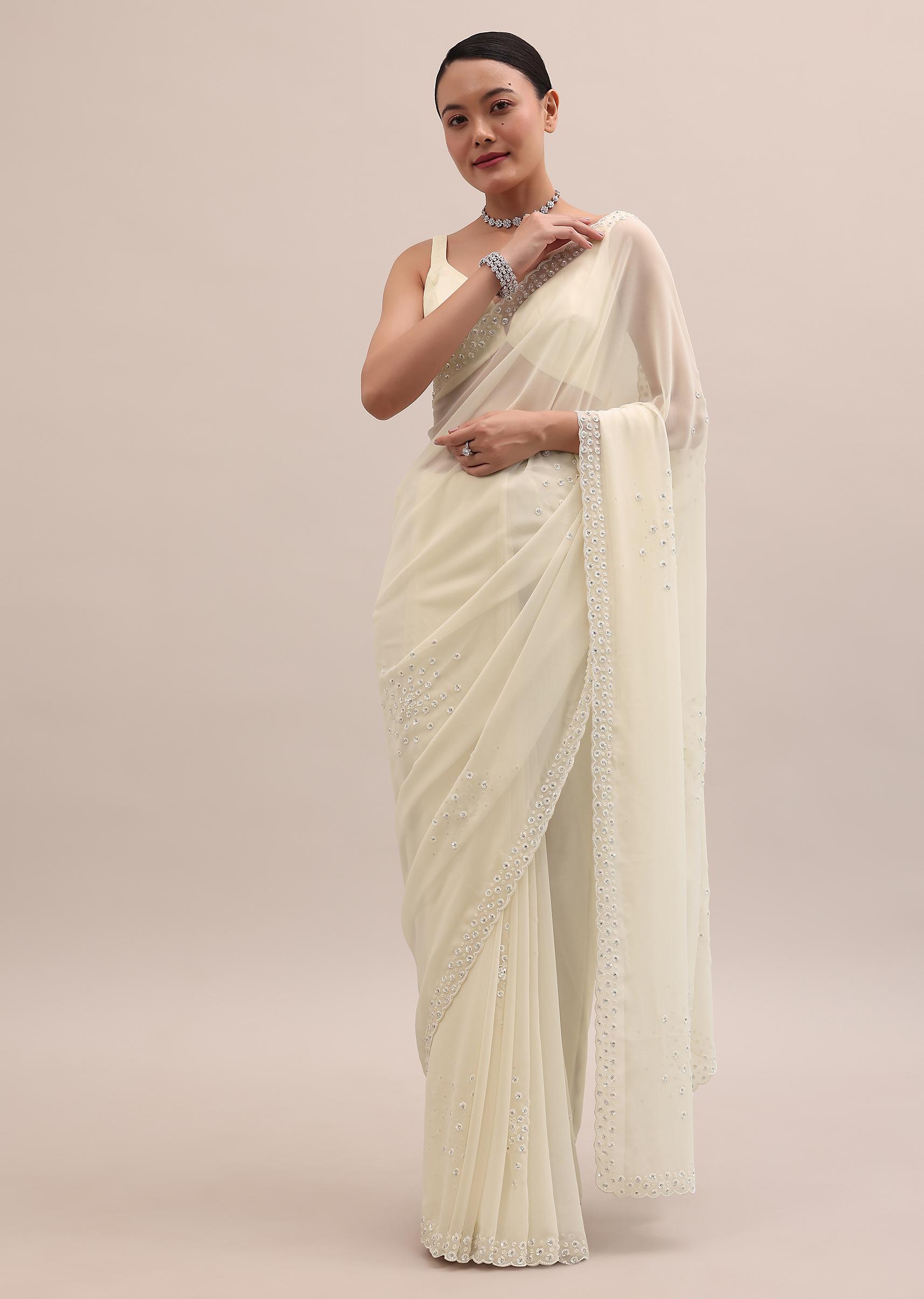 - This saree is crafted in georgette fabric and it is jeweled with sequins embroidery.