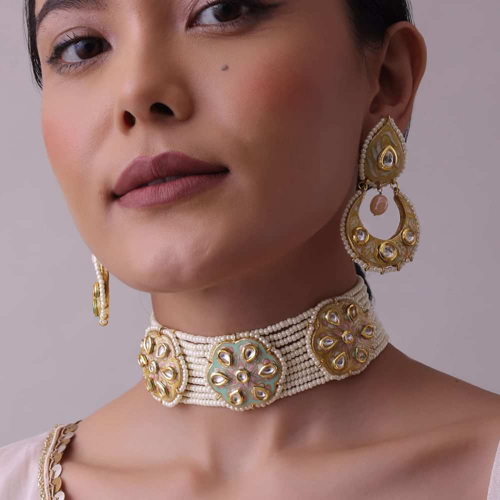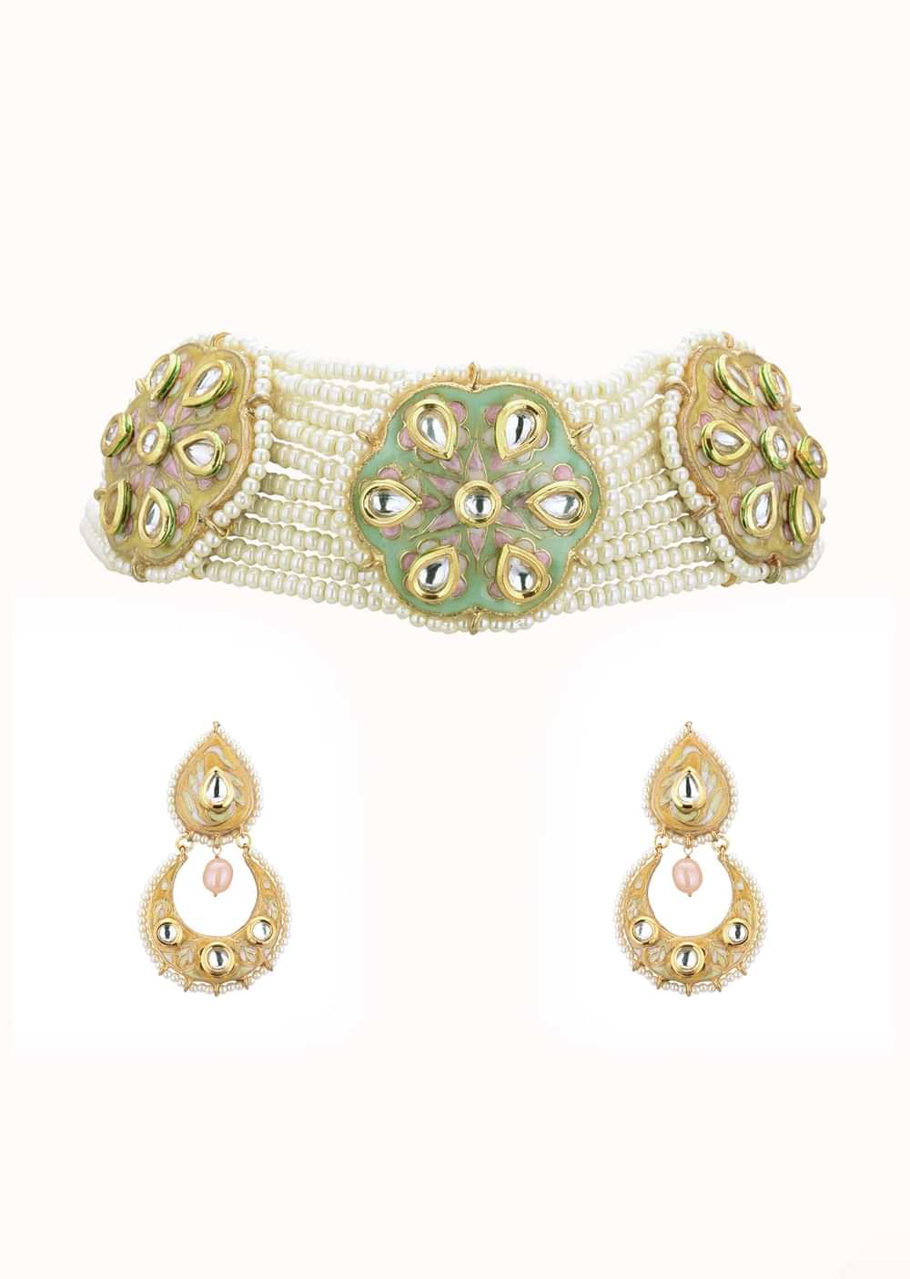 - This white gold-finish choker and earring set in mixed metal is a beautiful and timeless design.