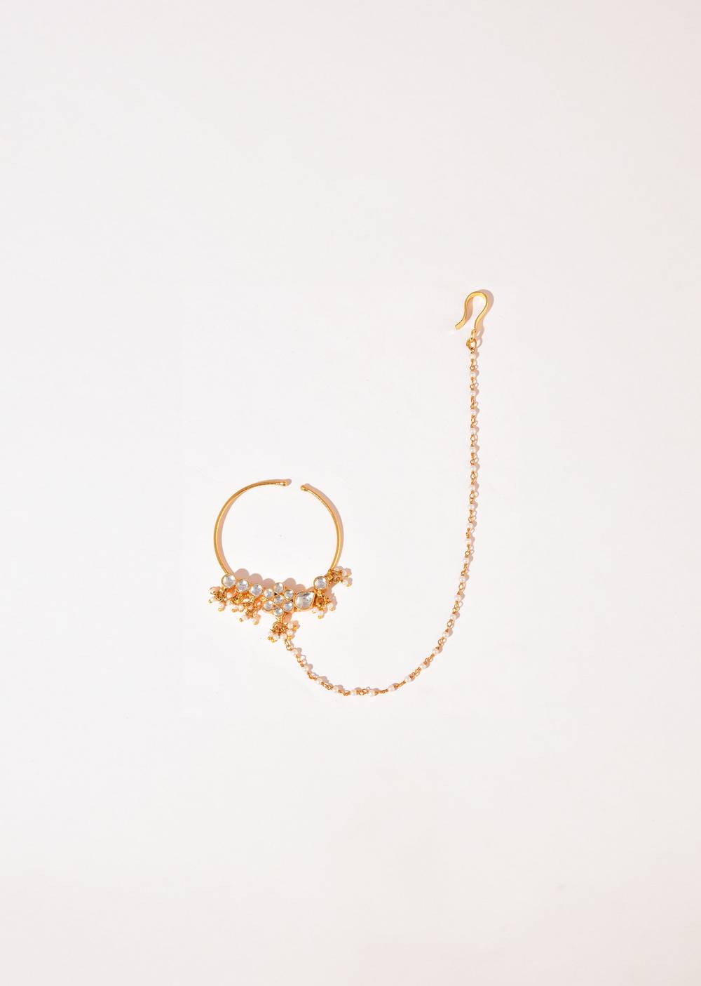Enhance your festive or bridal look with this white kundan bead drop nath, featuring delicate detailing and a graceful hanging bead for a soft traditional finish. Perfect for weddings and cultural celebrations, it adds timeless elegance to any ethnic ensemble.Awarded as the Most Trusted Brand, we're delivering styles you love, just as promised.
