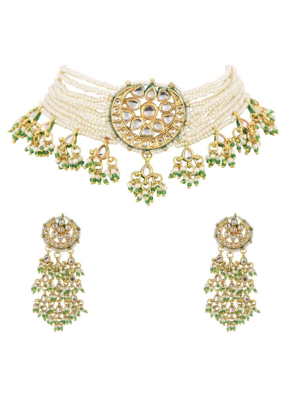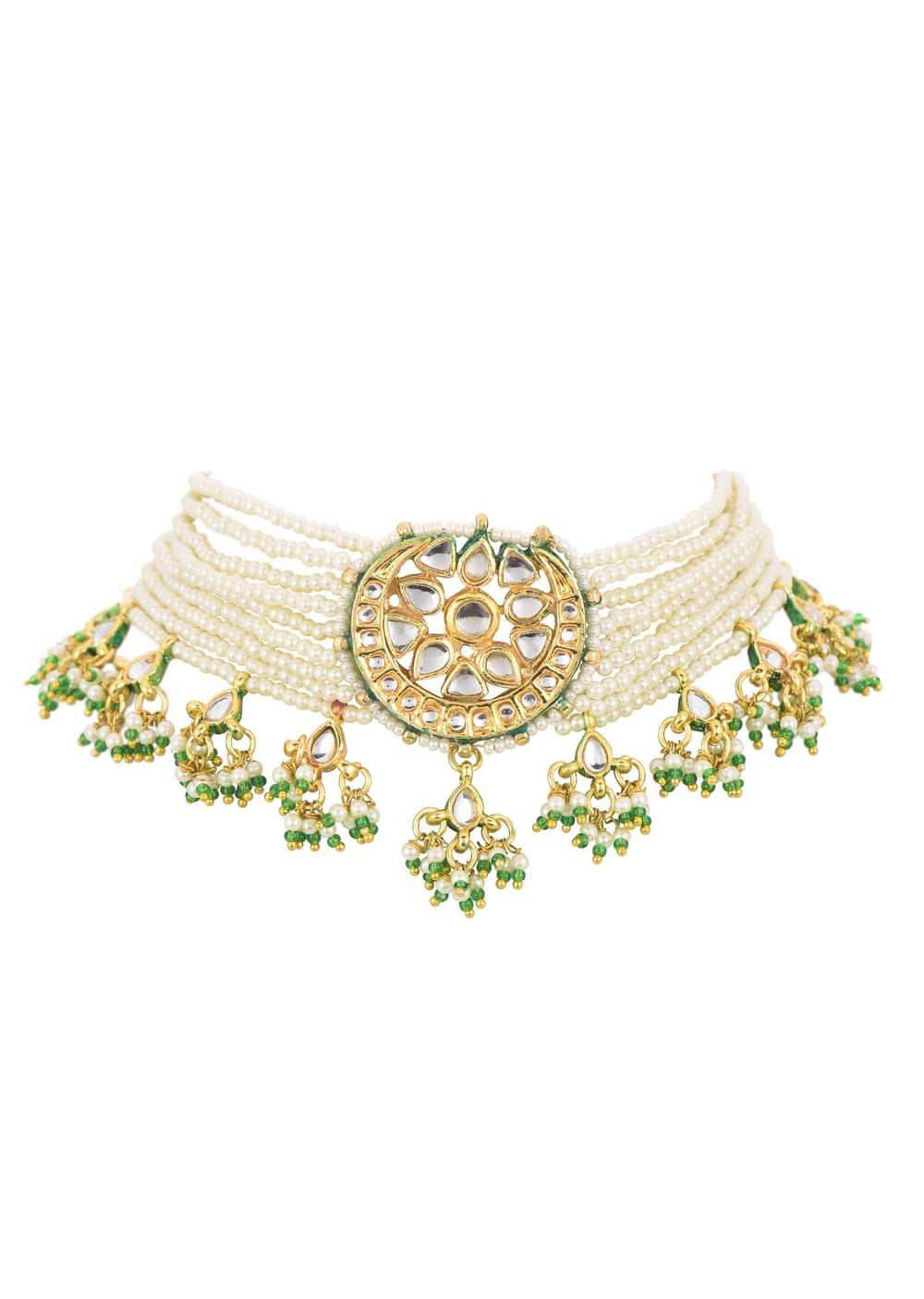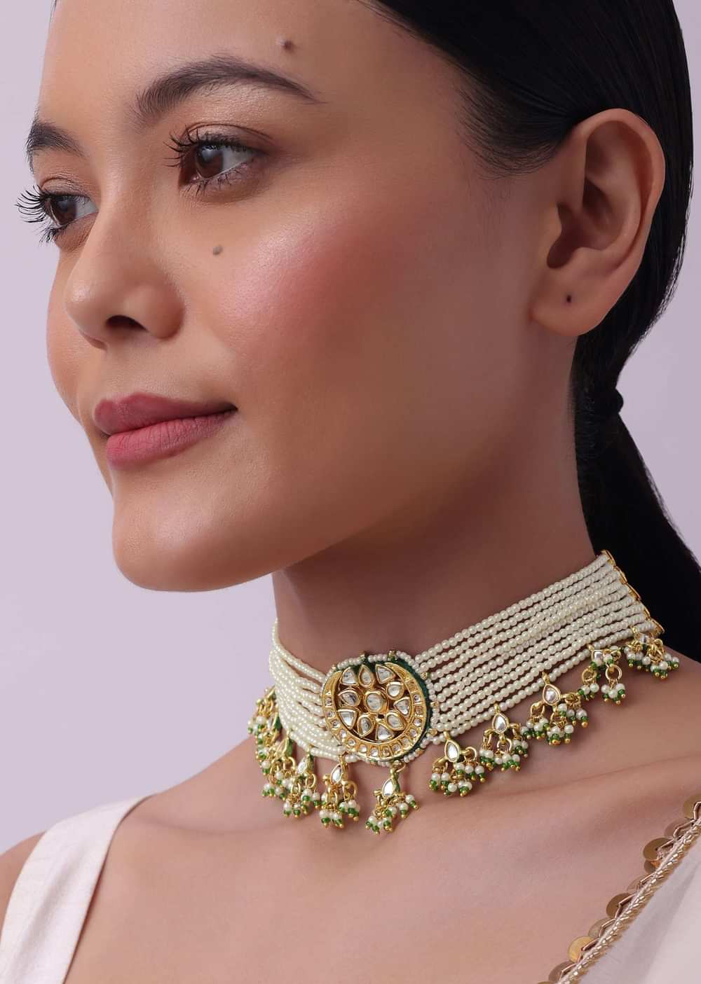 - Presenting our white kundan choker set, meticulously crafted in luxurious gold finish mix metal.