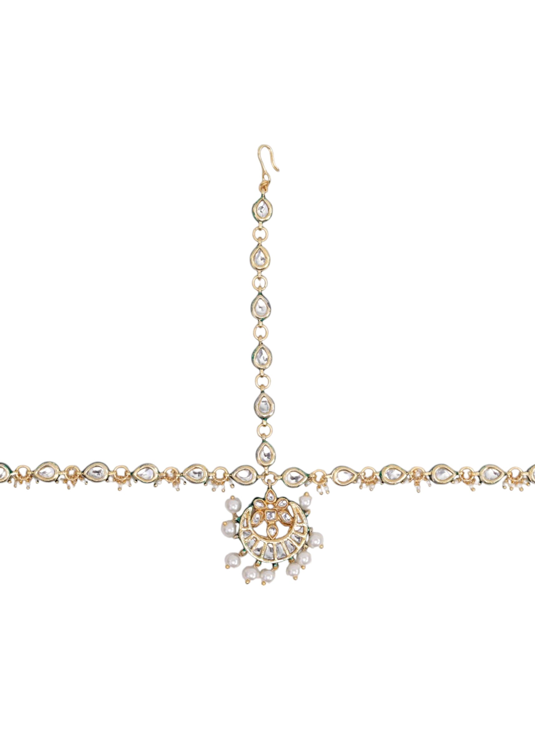 Complements matching kundan earrings or a necklace for a coordinated, royal look.Fit Tips: Adjustable design with secure hooks ensures a comfortable and stable fit on the head.
