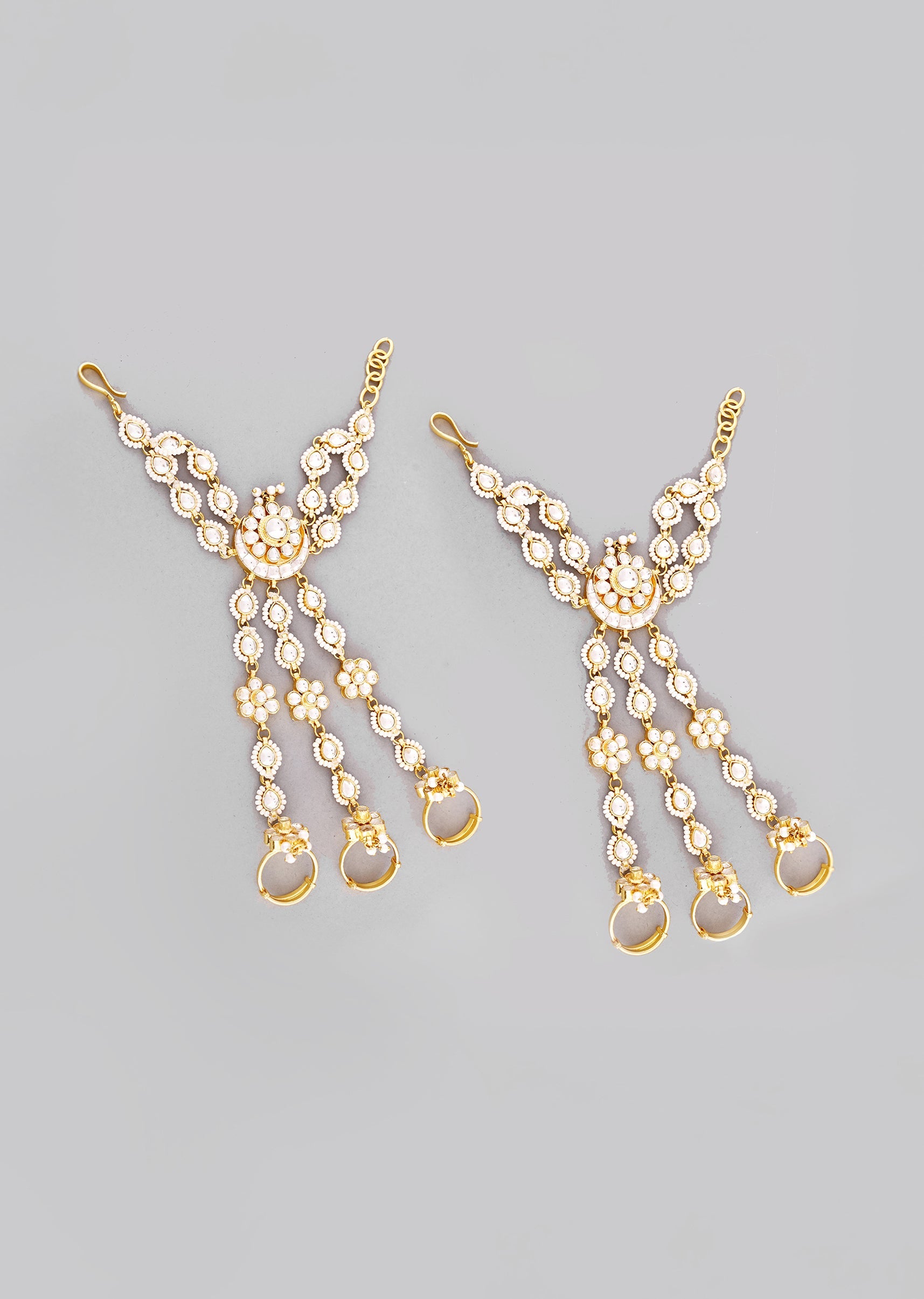 Add a touch of timeless elegance to your festive look with this white kundan hathphool set, crafted with intricate stone detailing for a graceful traditional finish. Perfect for weddings or special occasions, it beautifully enhances both bridal and ethnic ensembles.Awarded as the Most Trusted Brand, we're delivering styles you love, just as promised.