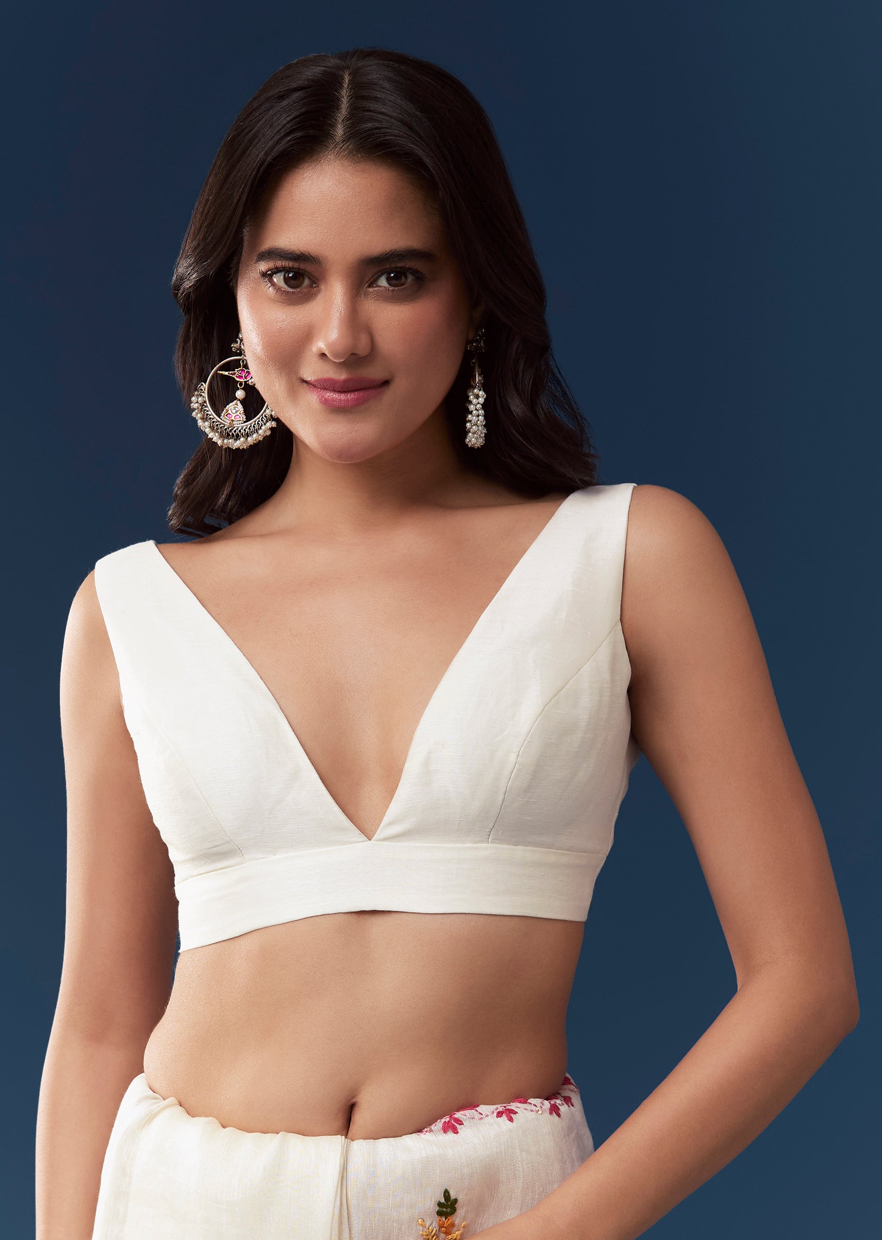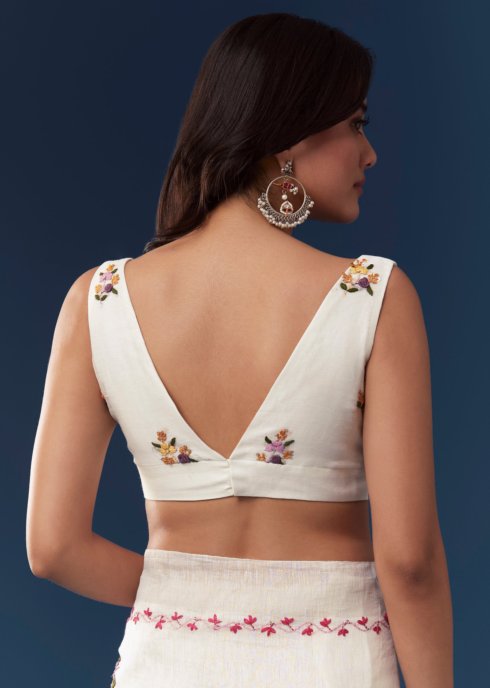 Fit Tips:Drape the saree so the embroidery is evenly displayed and the pallu falls smoothly along the shoulder for a neat and polished look.
