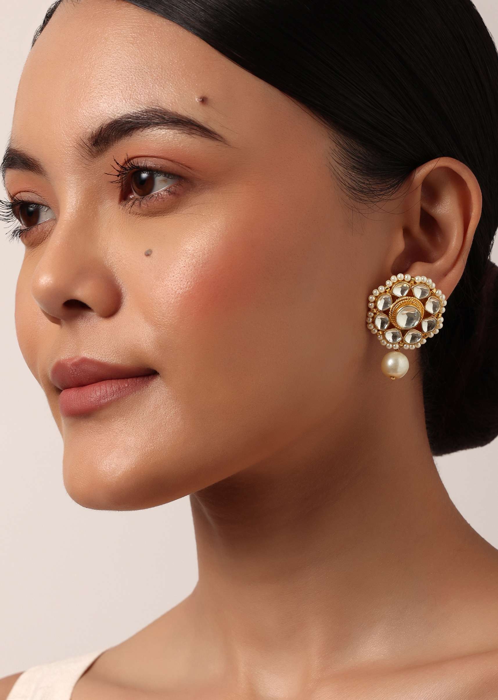 - Embedded with delicately cut kundan stones, it is paired with matching danglers.