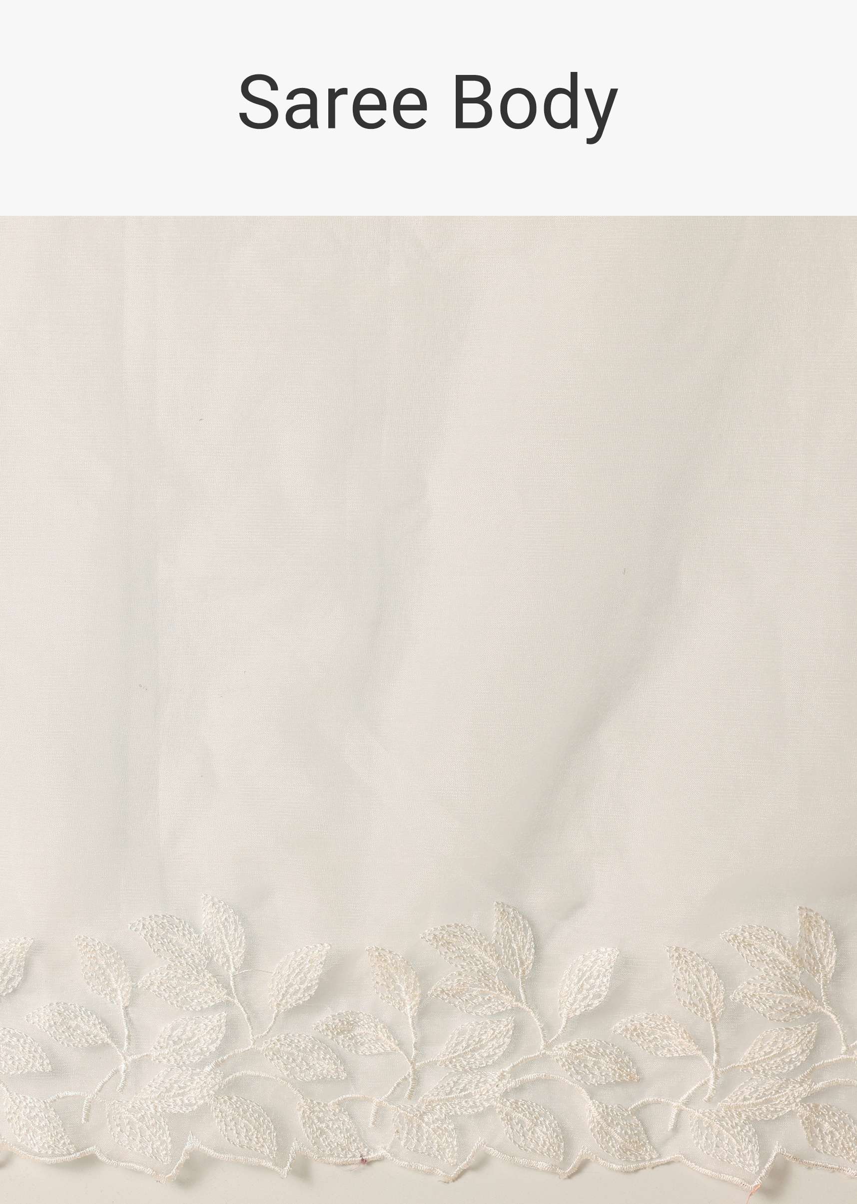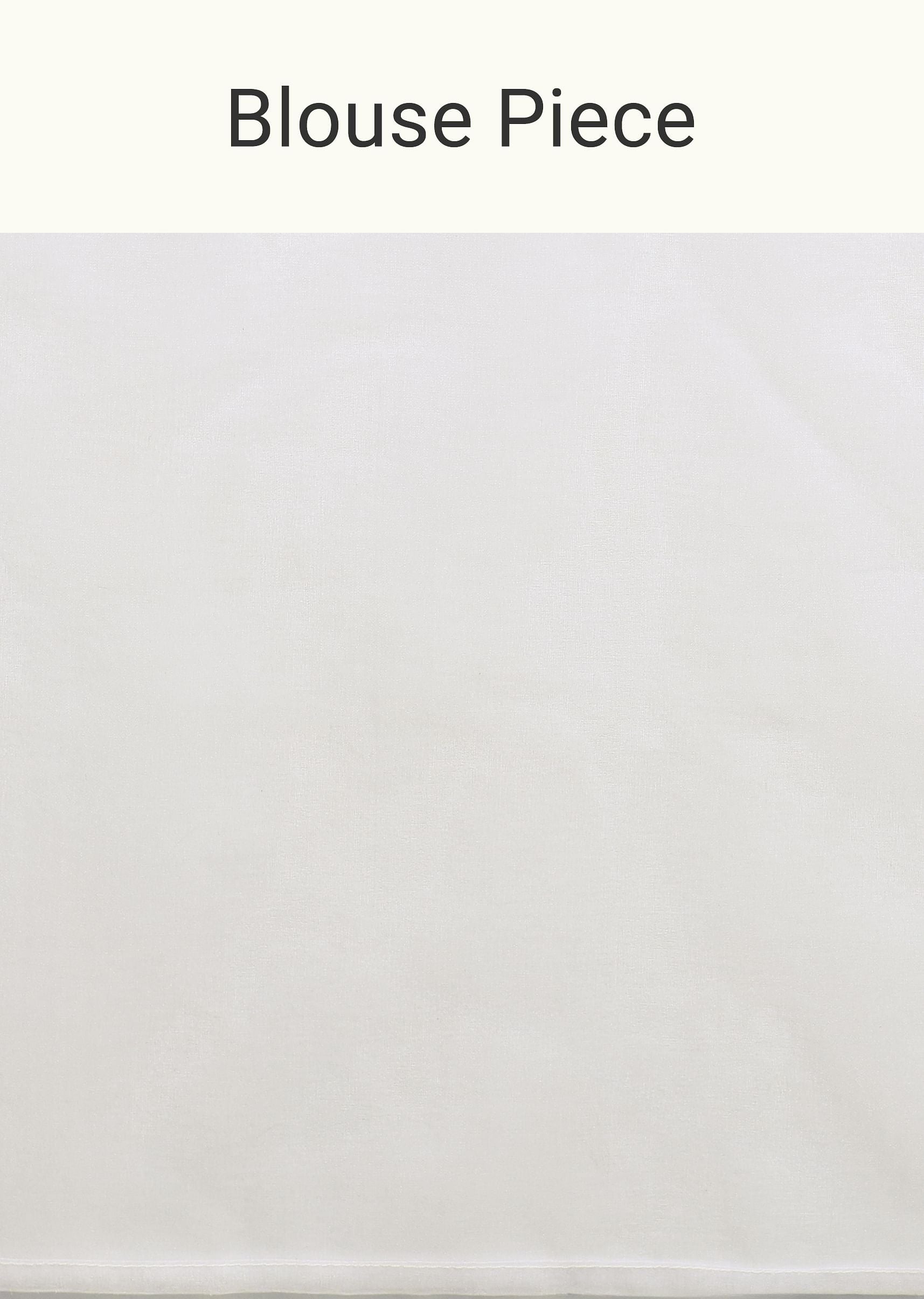 White Saree In Organza With Floral Motif Border And Unstitched Blouse Piece
