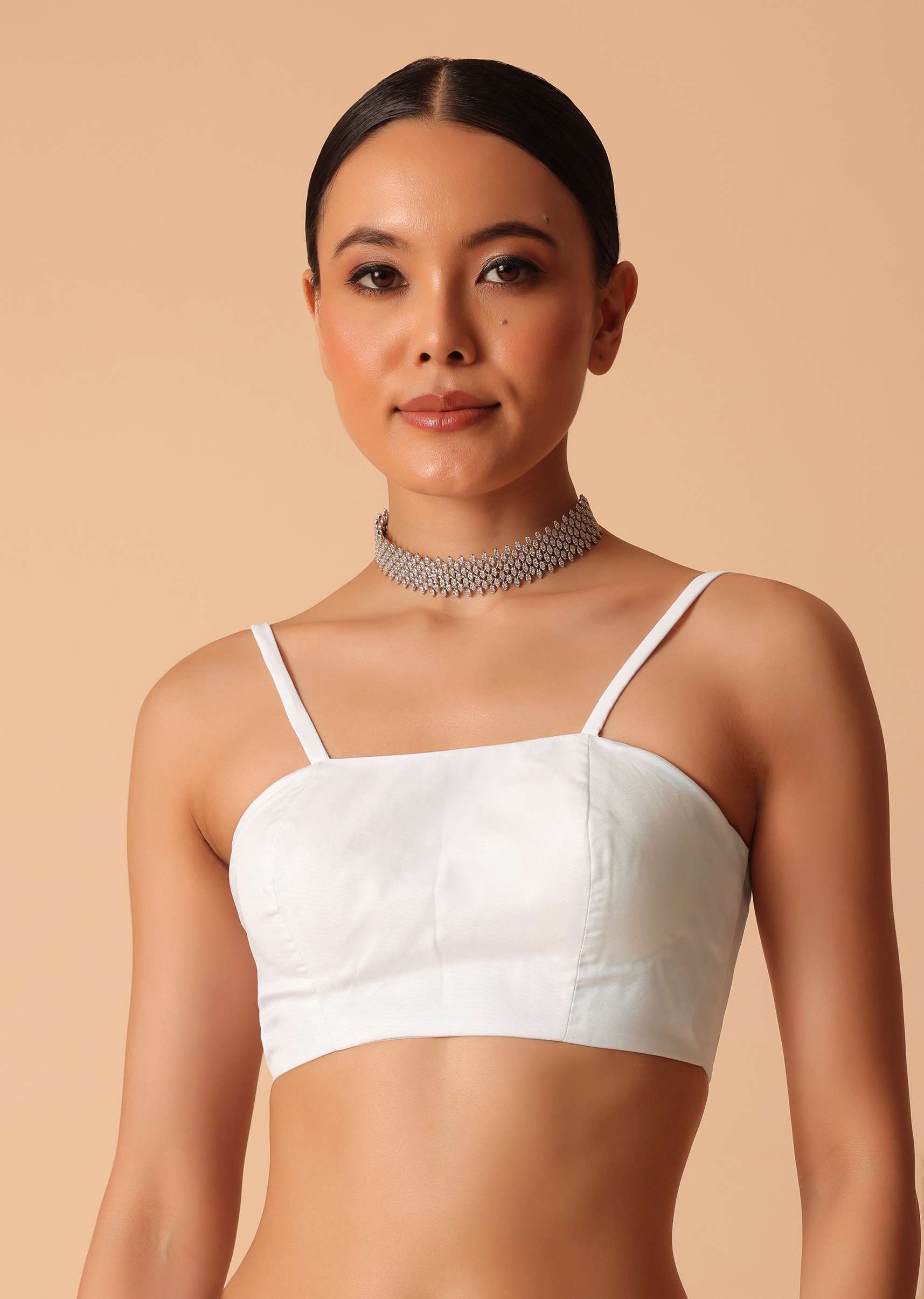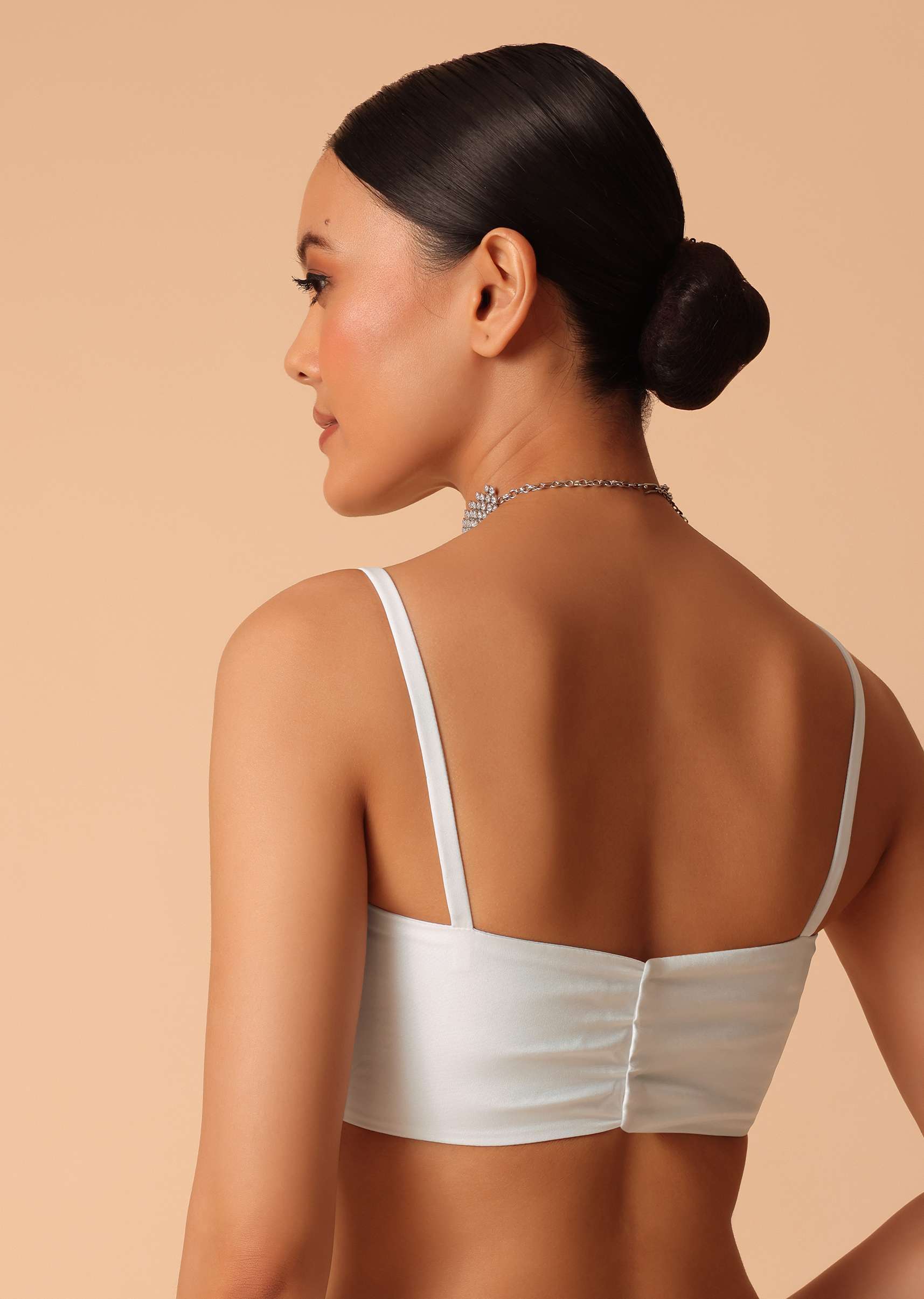 - Fashioned from luxurious organza fabric, this saree is decked on a serene white hue.