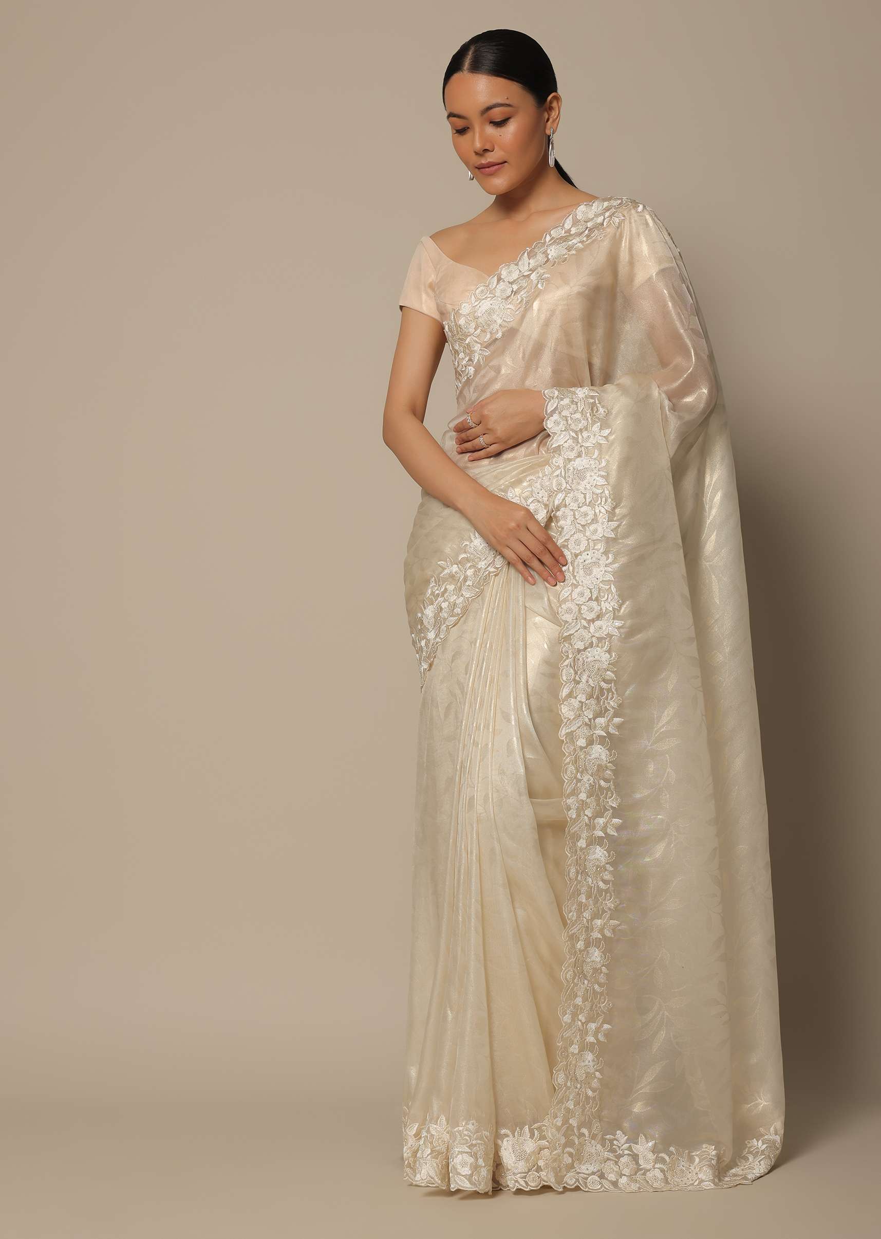 - Elegant and chic, this ethereal white saree is an amalgamation of modernity and traditions.