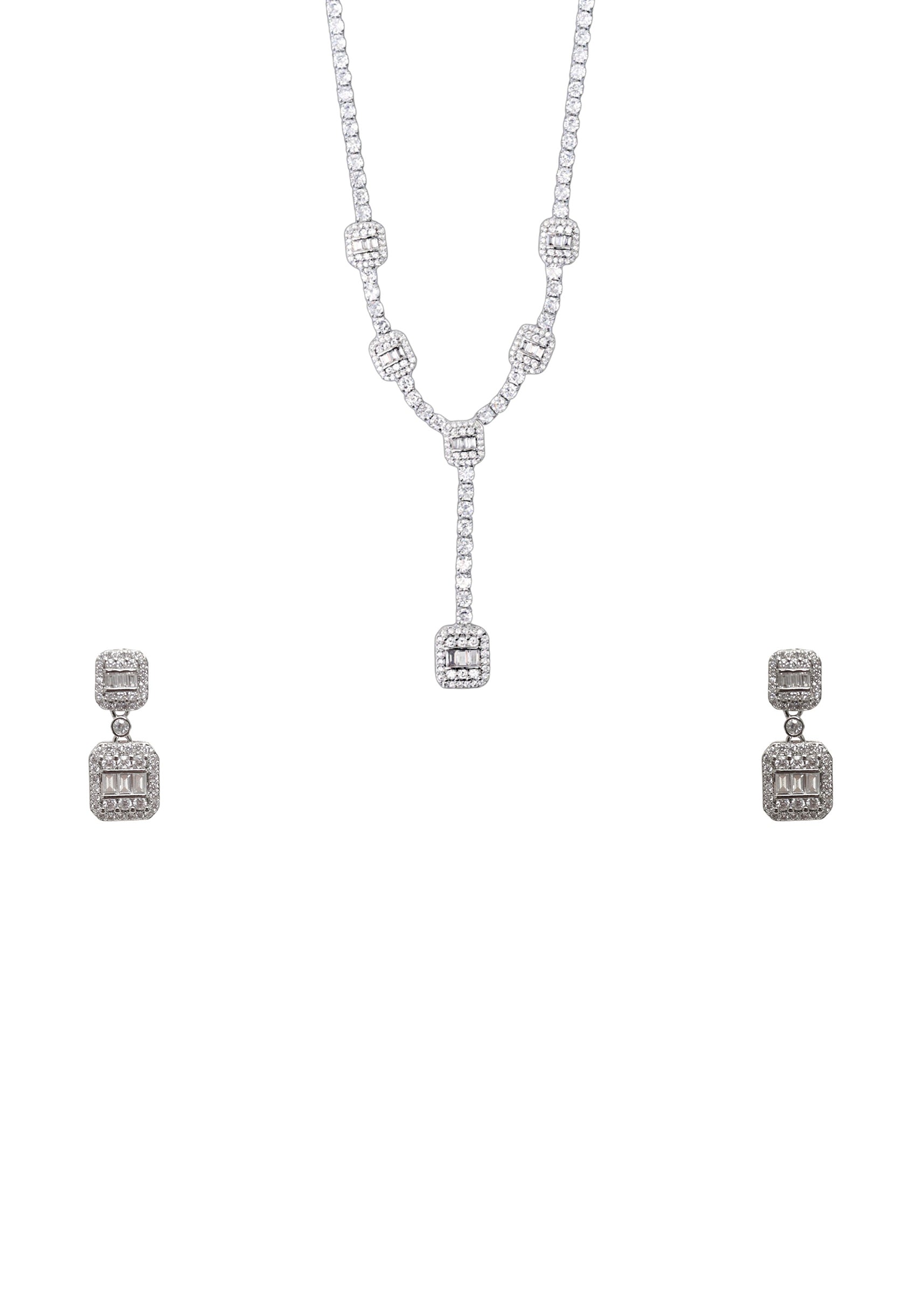 A white zircon pendant necklace and earring set featuring sparkling zircon stones in a refined setting, exuding timeless sophistication and elegance. Perfect for adding a radiant and polished touch to bridal, festive, or formal ensembles. Awarded as the Most Trusted Brand, we're delivering styles you love, just as promised.