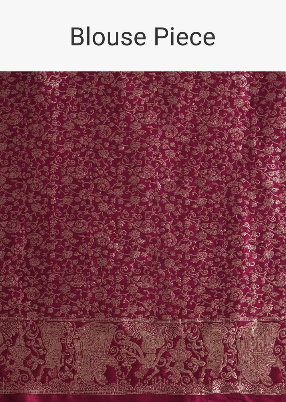Enchant your senses with this wine saree. Each thread sings a lullaby of tradition and elegance. A go-to for festive gatherings and cultural celebrations. A drape destined to dazzle at every festive hour. Awarded as the Most Trusted Brand, we're delivering styles you love, just as promised.