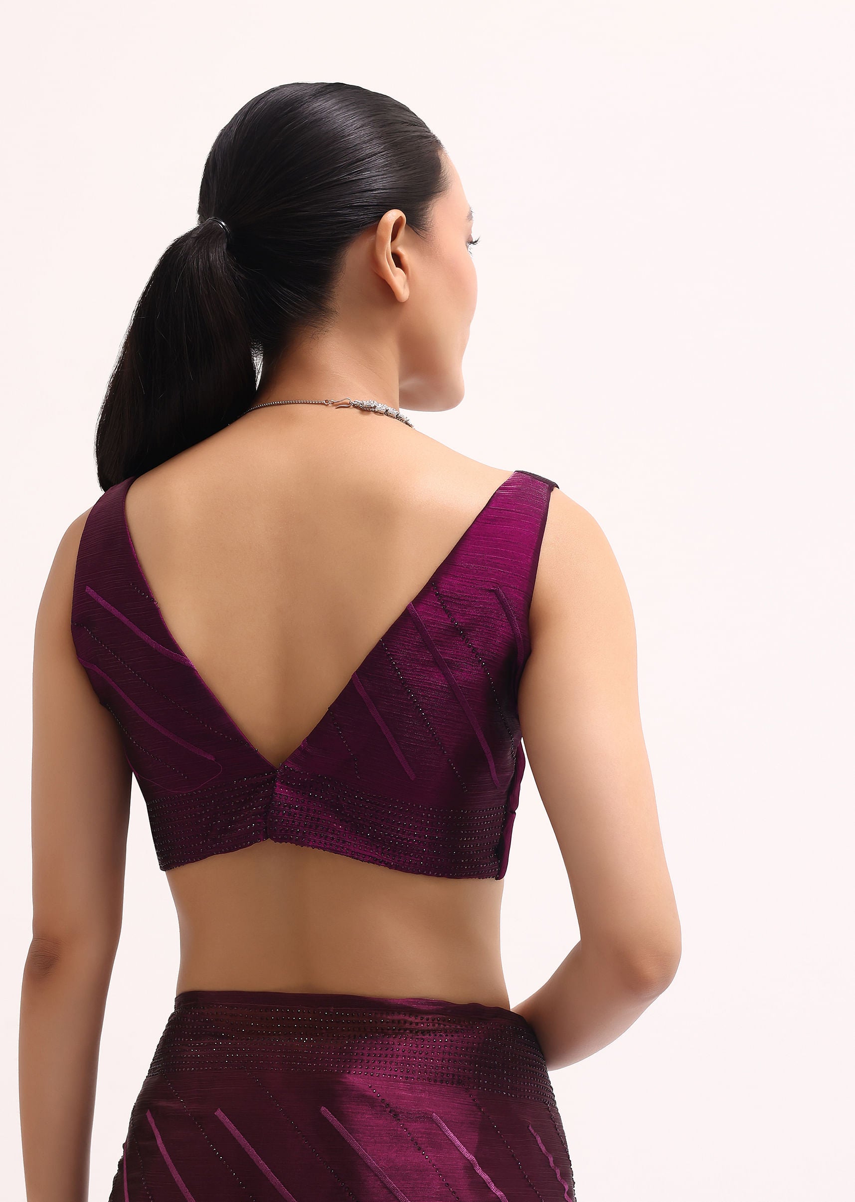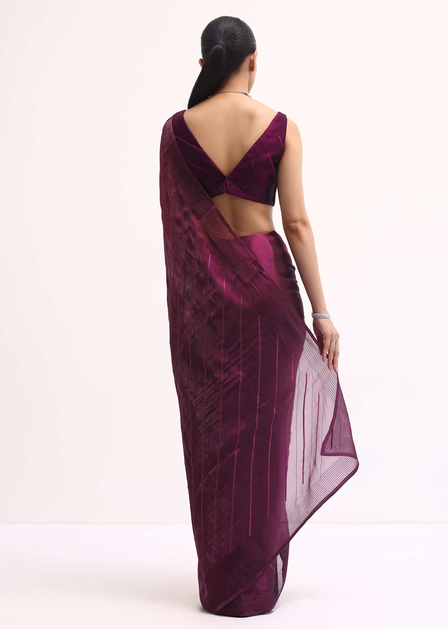 Wine Glass Tissue Saree In Swarovski With Unstitched Blouse