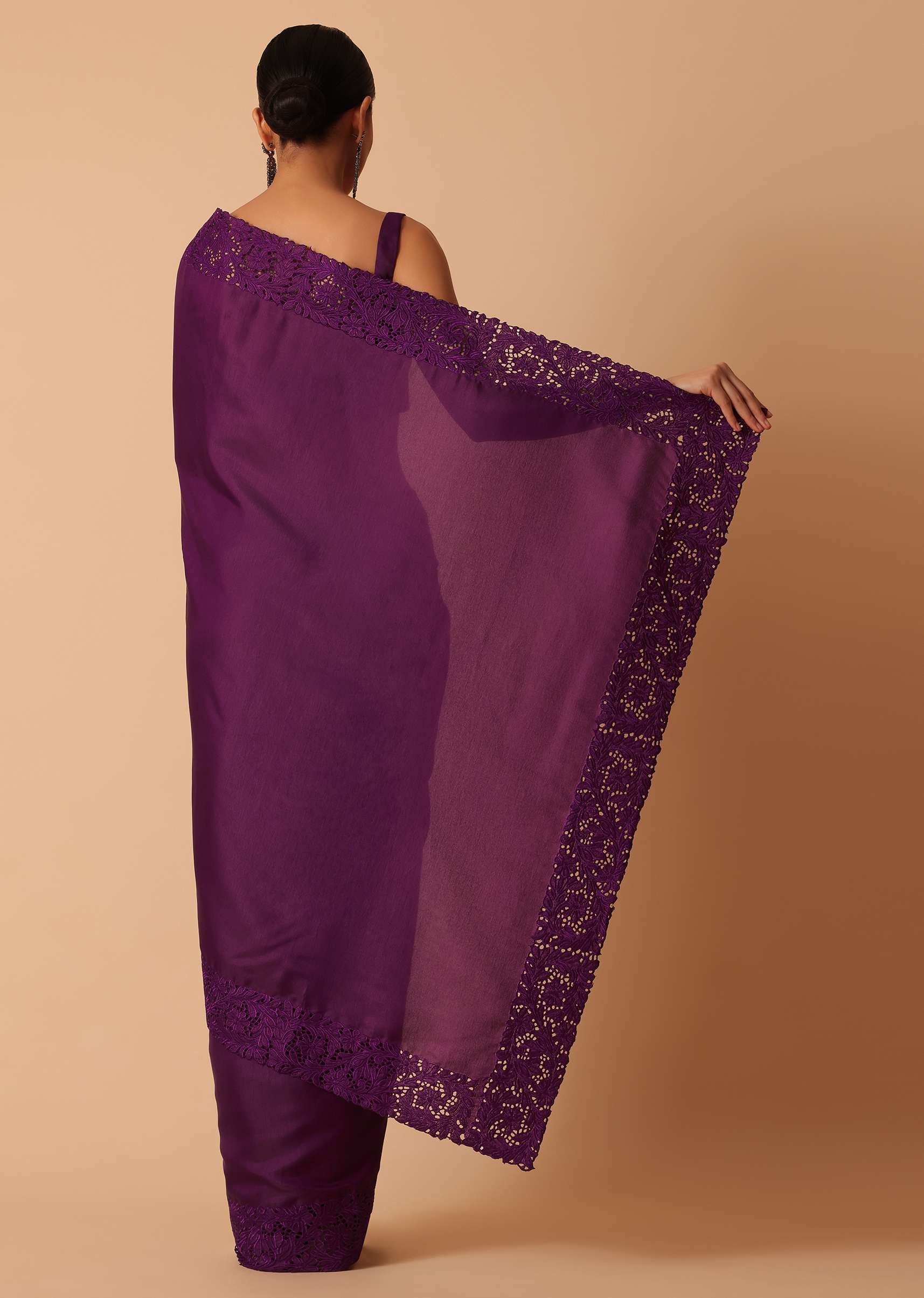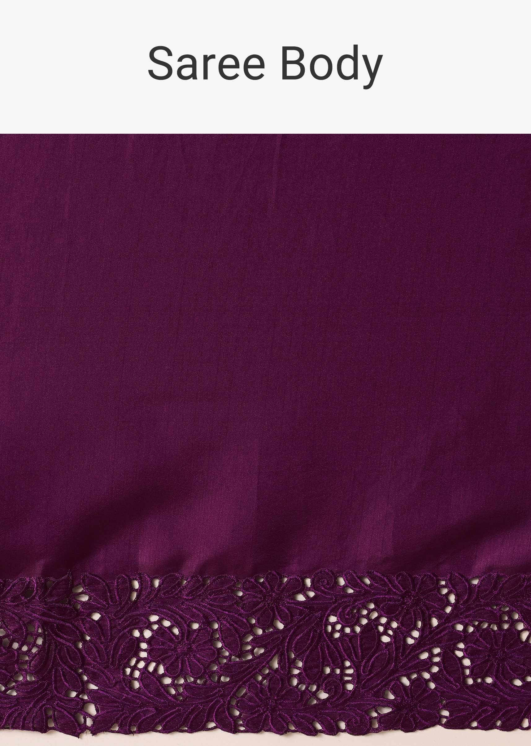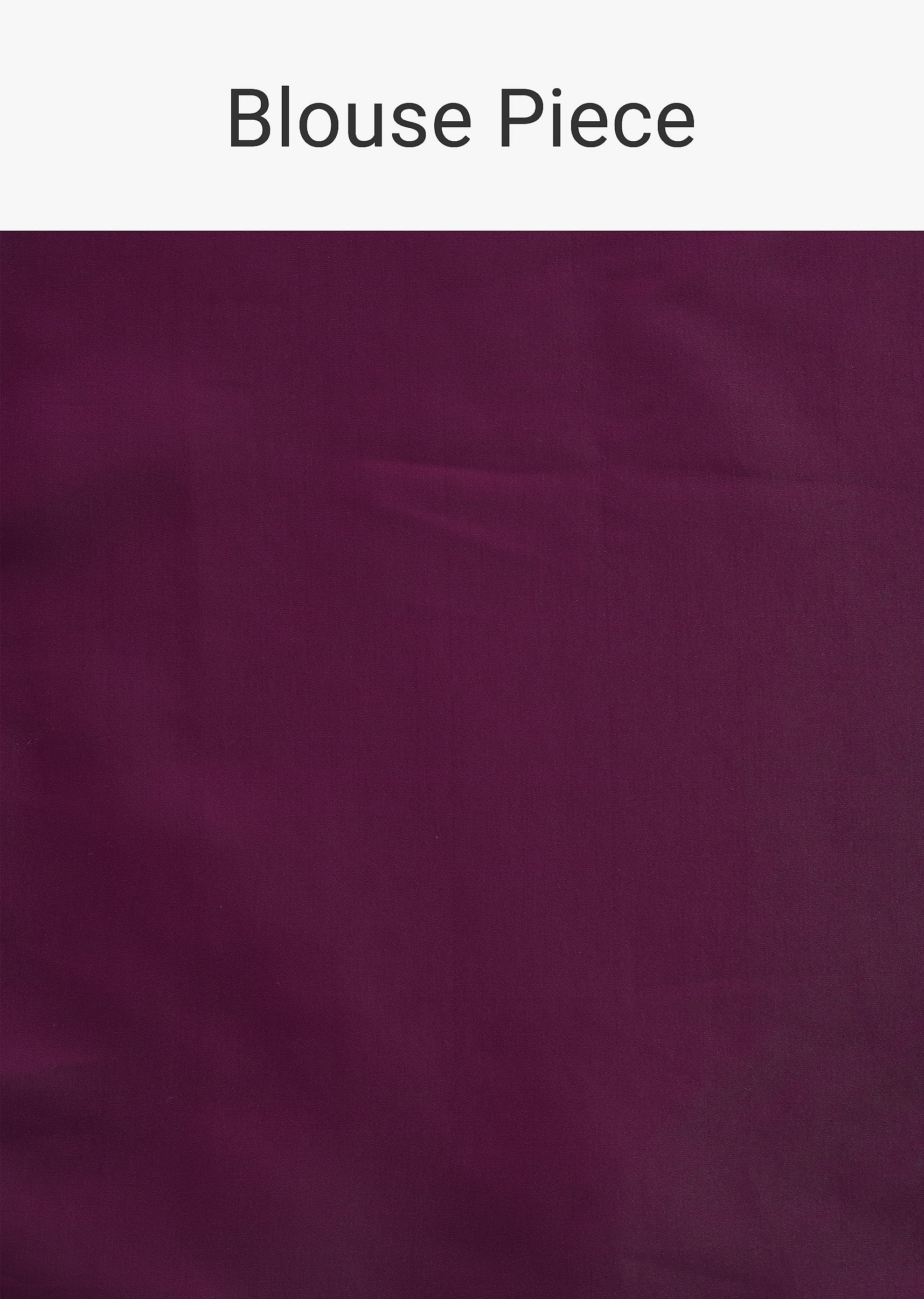 Wine Organza Saree With Lace Border And Unstitched Blouse Piece