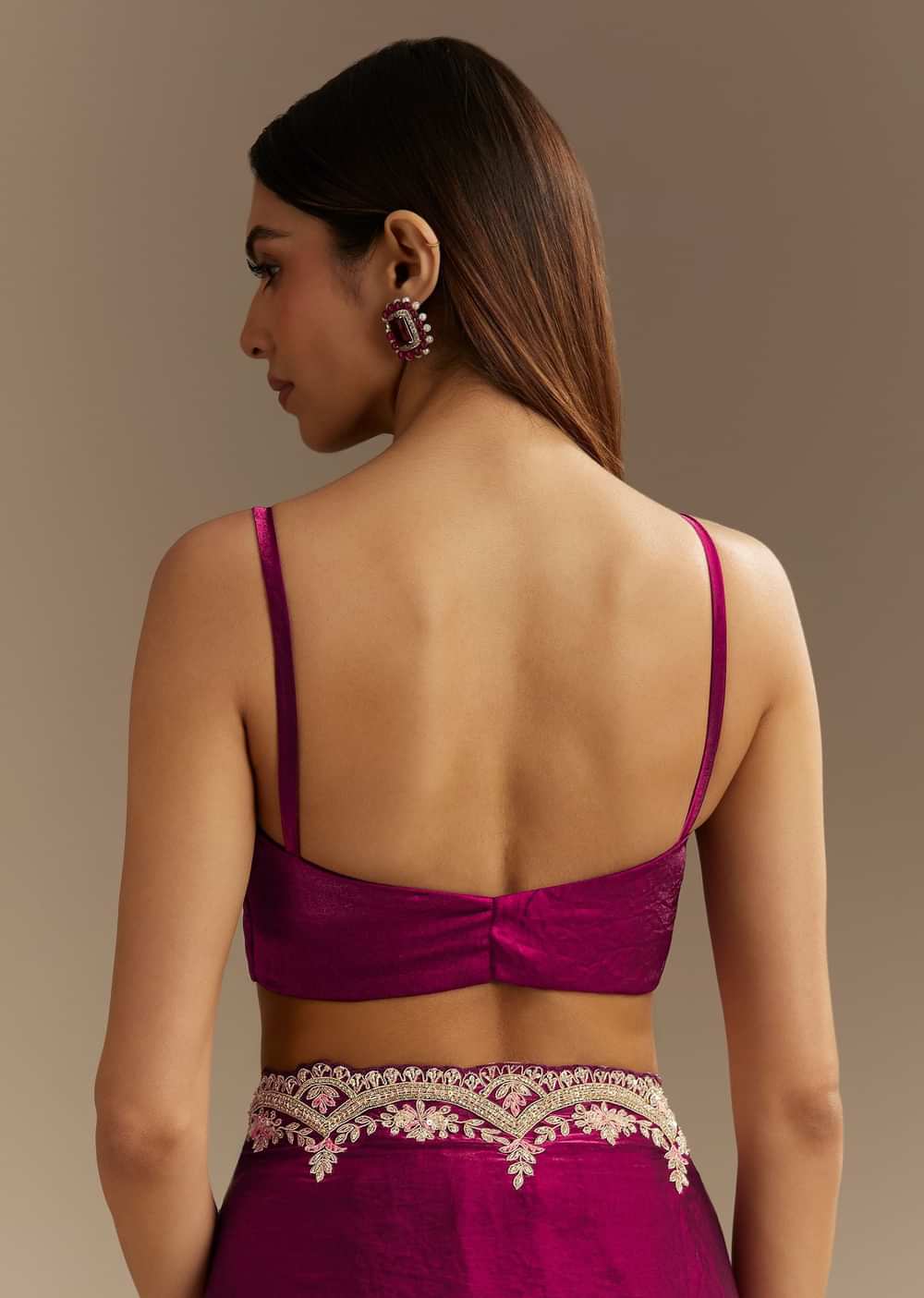 - Drape Yourself In Refined Elegance With This Wine Satin Saree Adorned With Intricate Zardosi Cutdana And Sequins Embroidery.