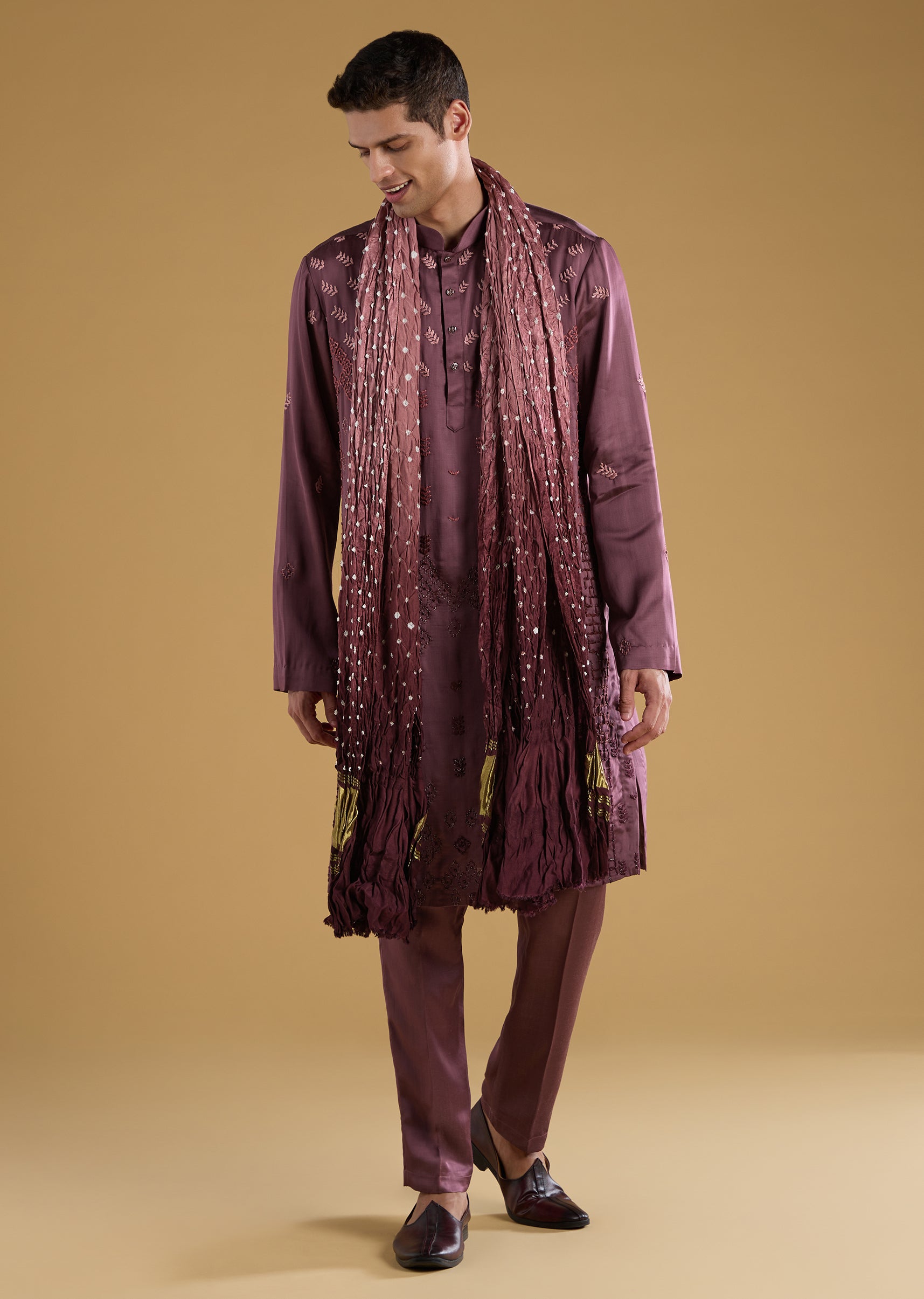 Crafted in luxurious silk and art silk, this kurta set brings effortless refinement to any celebration. The subtle resham embroidery adds just the right touch of texture, while the full... More Product Details