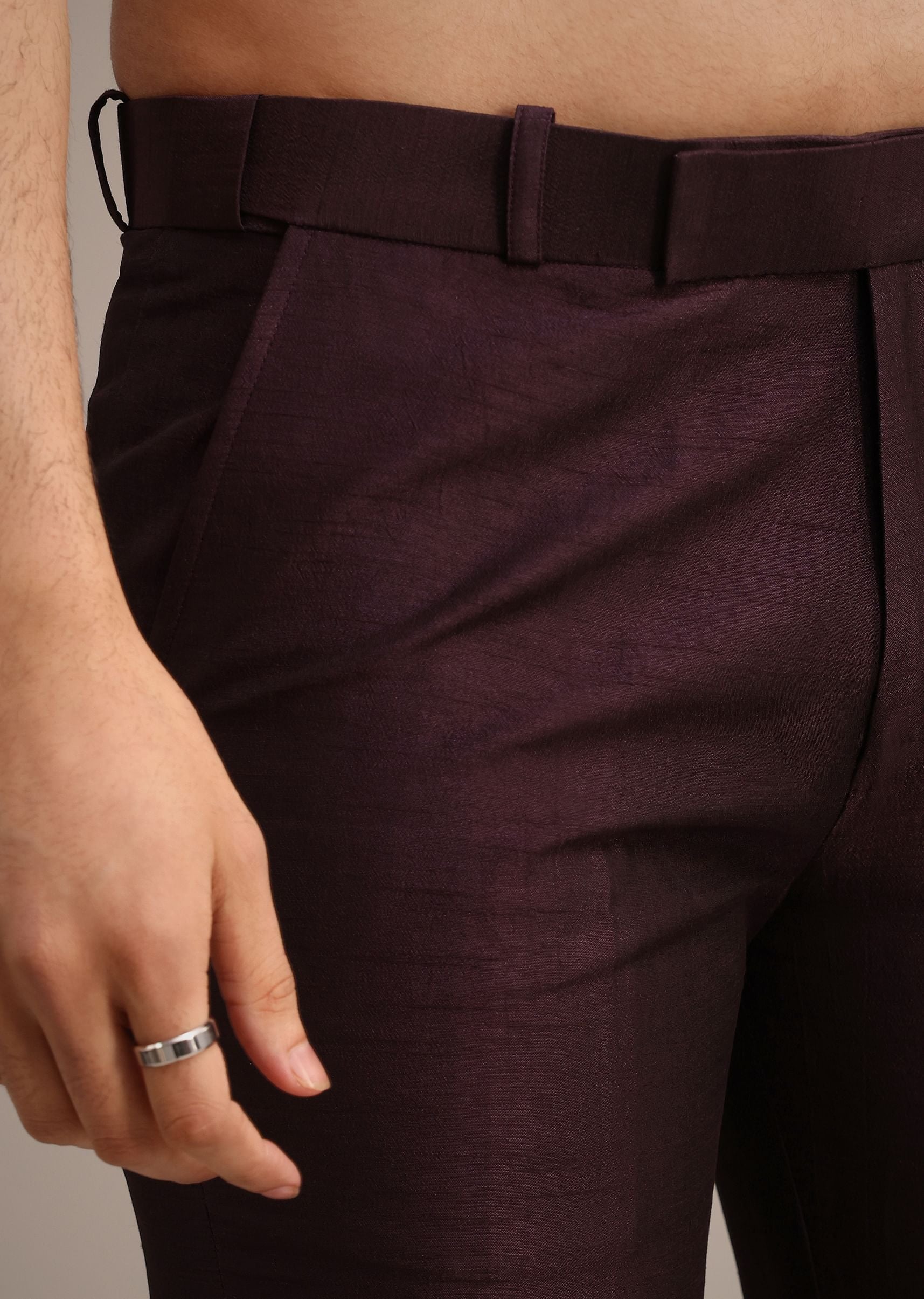 - Showcasing rich Indian artistry and craftsmanship is this wine sherwani set.